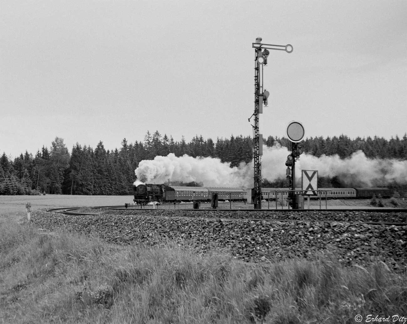 und ganz links ist im qualmigen Dunst gerade noch 052 475 vor dem N 3419 nach Selb Stadt erkennbar.