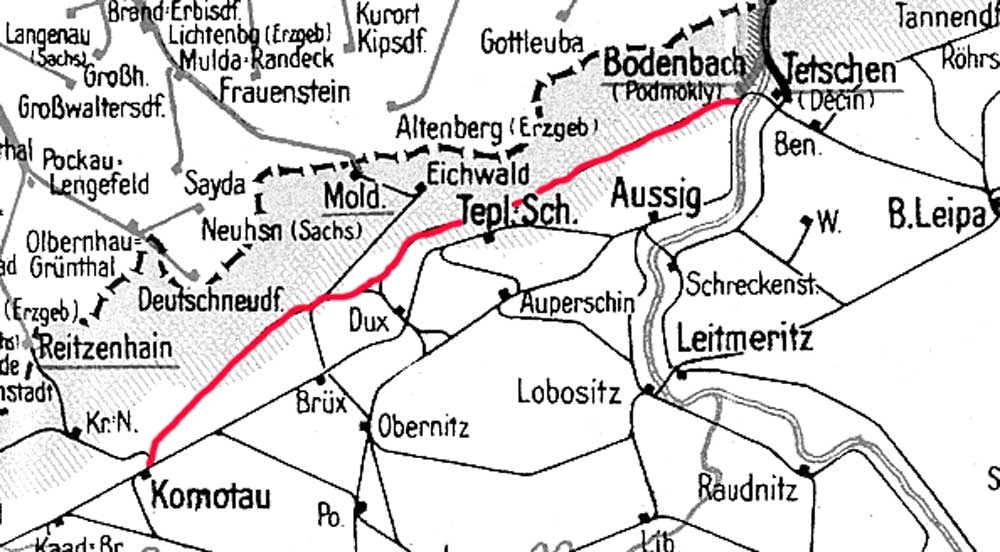 Bodenbach Duxer Bf 0,93 - Unterhaan 45,80 - Wiesa-Oberleutensdorf 53,76 - Komotau DBE 82,27