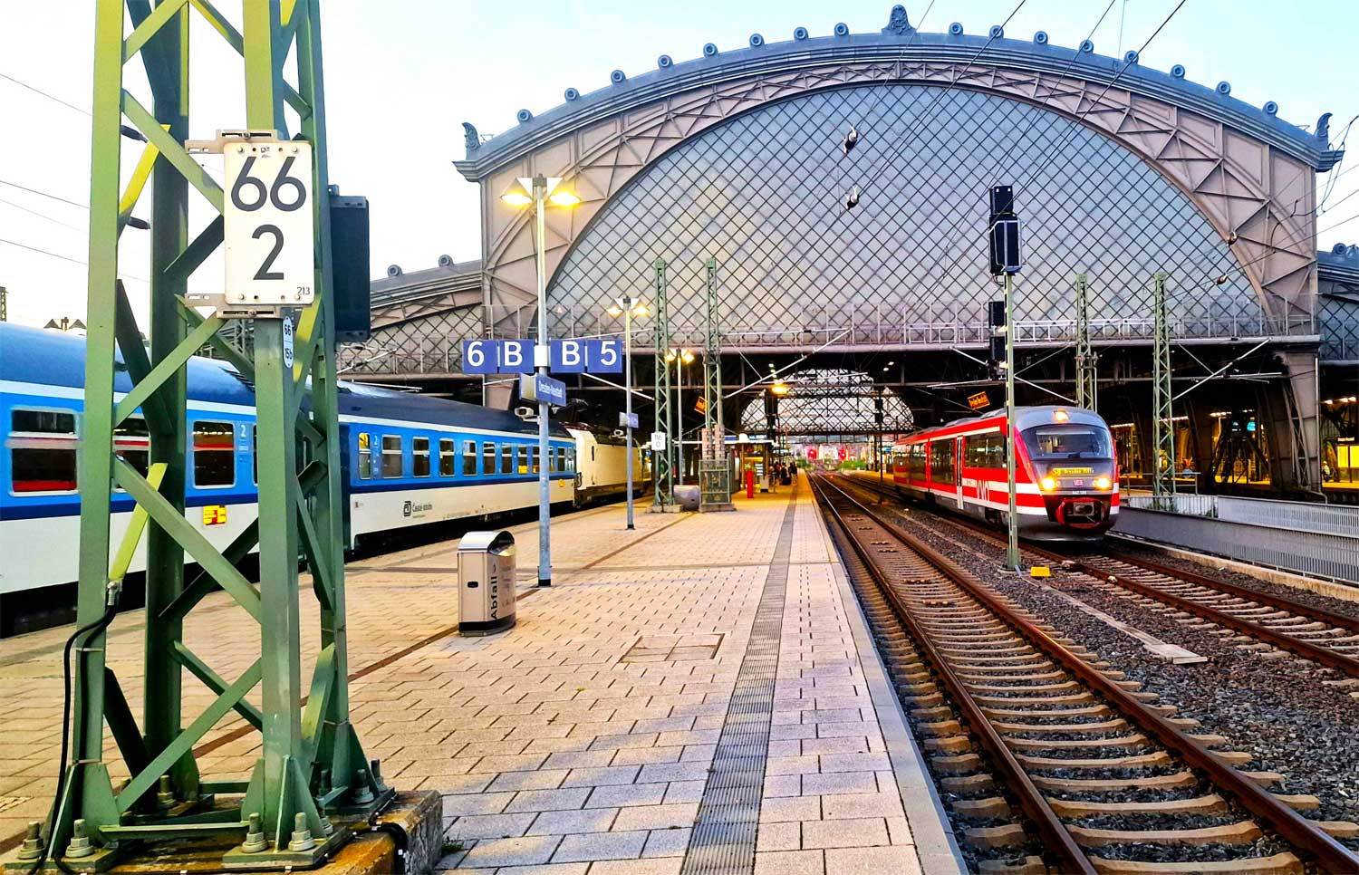 bei km 64,7 (Gleis am Bahnsteig) zwischen Dresden Hbf und Dresden Neustadt in Dresden Mitte - Blick Richtung Děčín hlavní nádraží (Bodenbach)