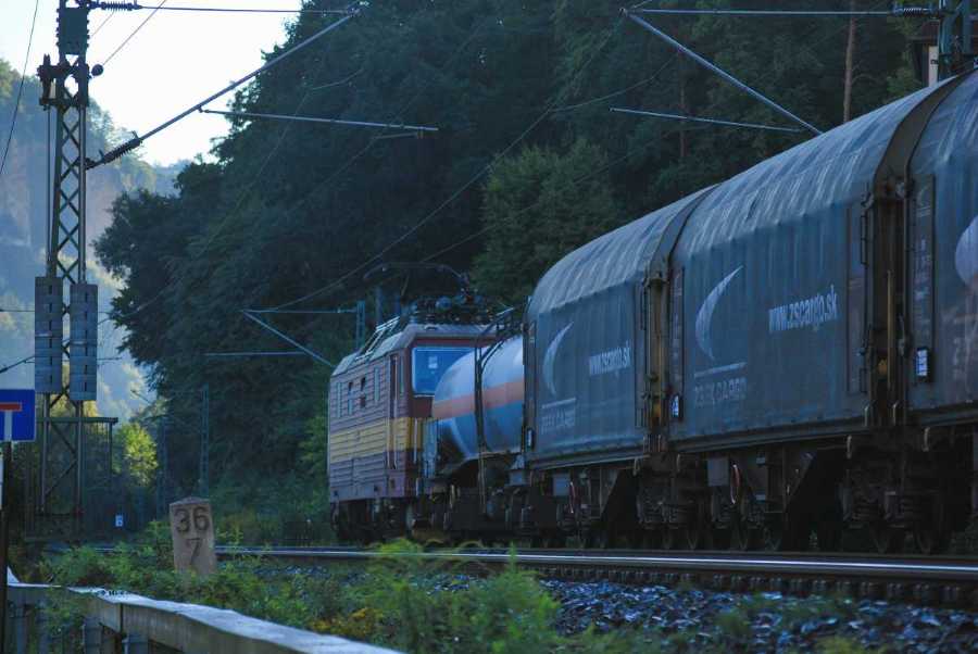 km 3,7 und km 3,8 in Děčín-Prostřední Žleb (Mittelgrund) - 193 292 mit EC 171