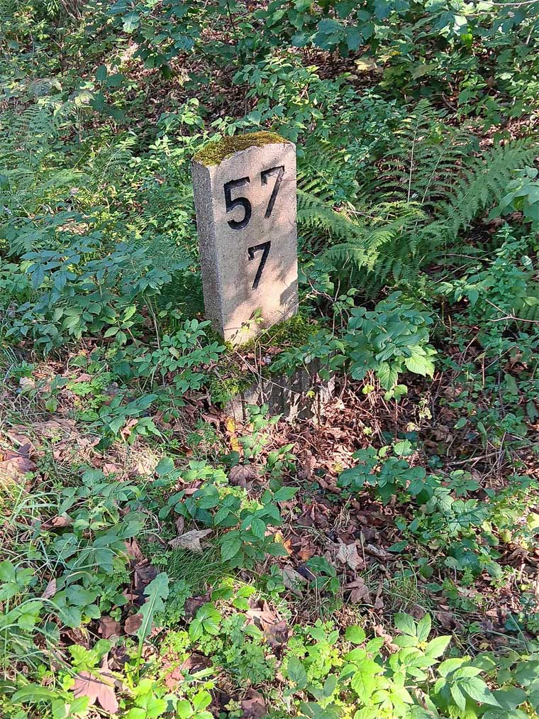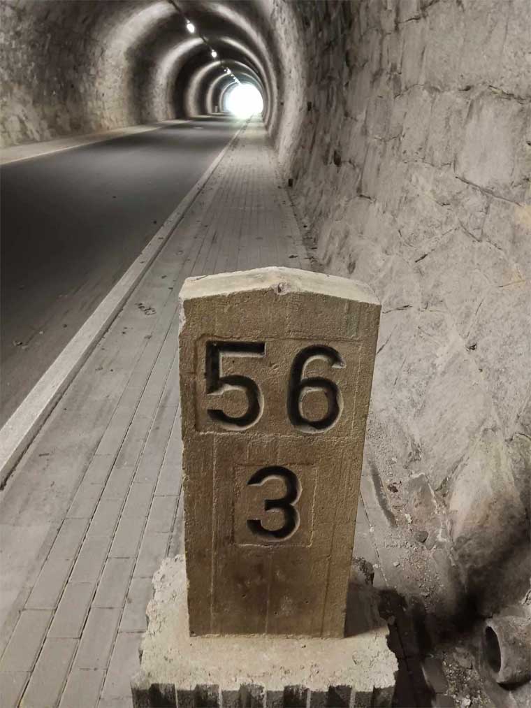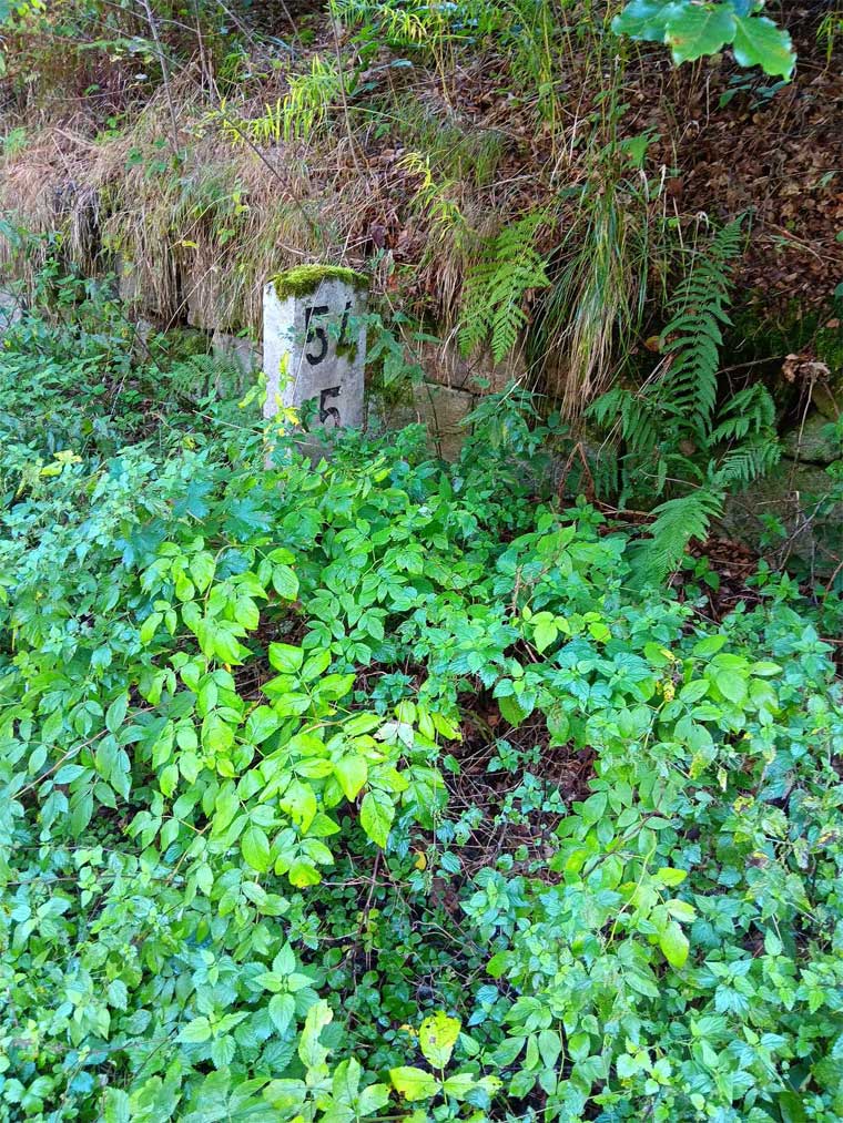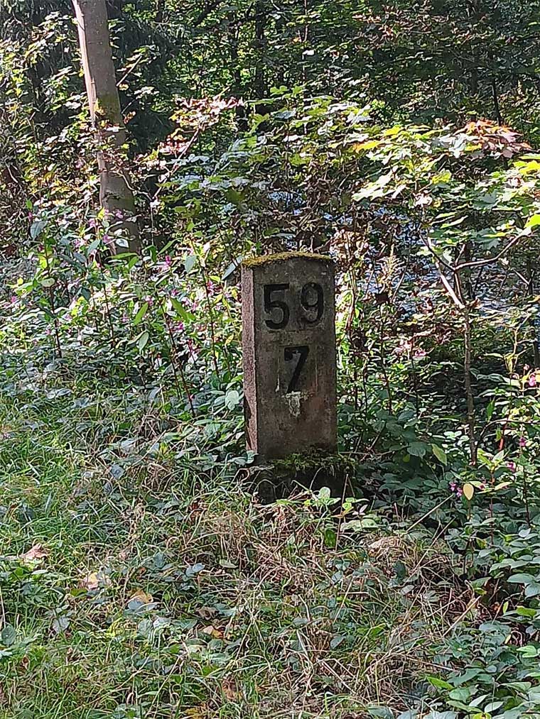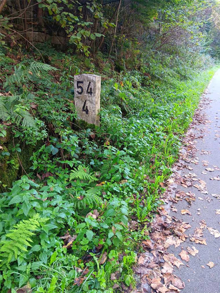 Davor der alte Myriameterstein 6 mit oben angebrachter Zahl 600 hm.