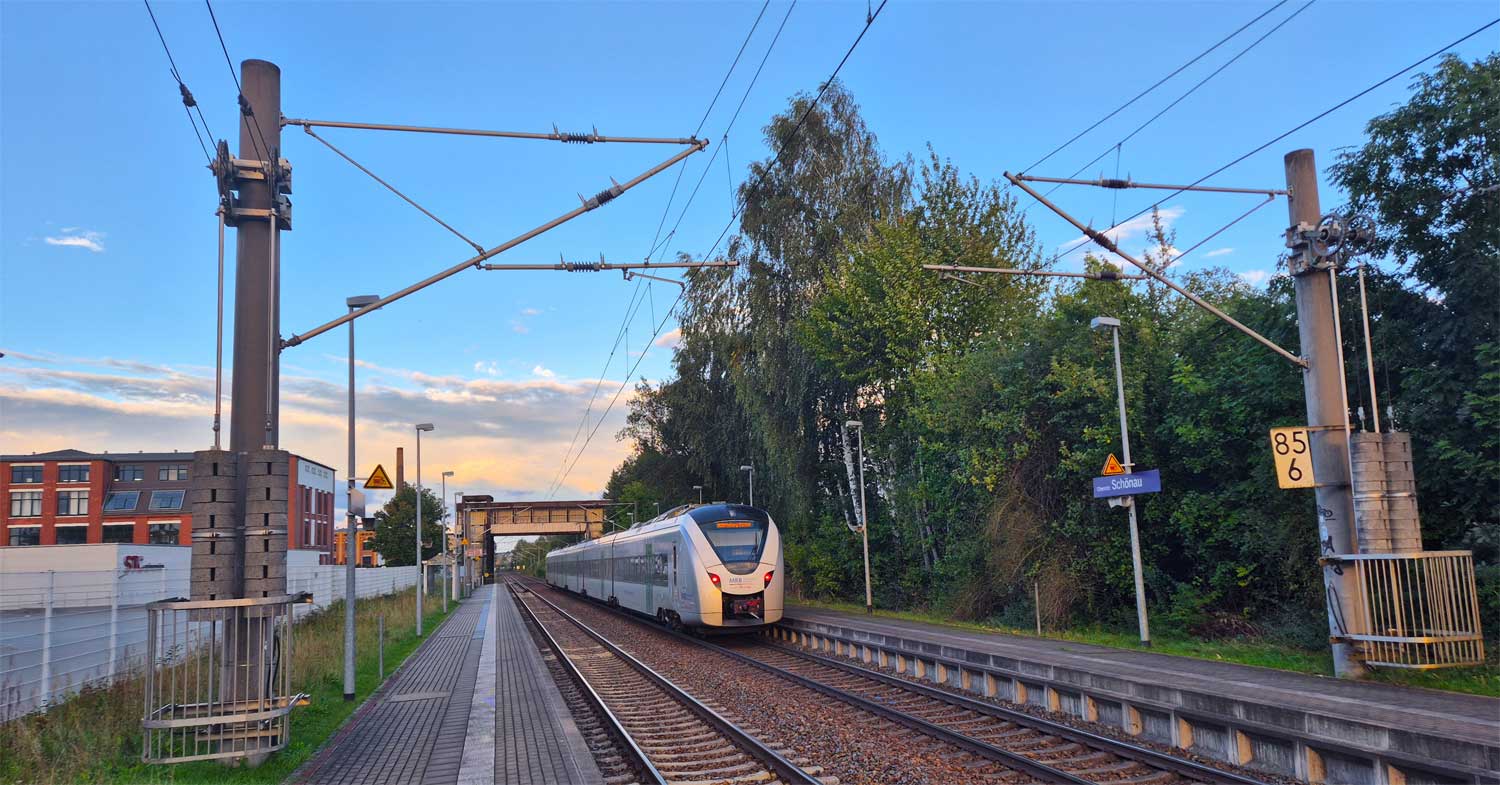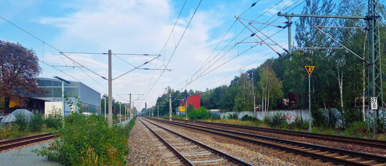 km 85,6 in Chemnitz-Schönau (früher: Wanderer Werke) - Blick Richtung Dresden