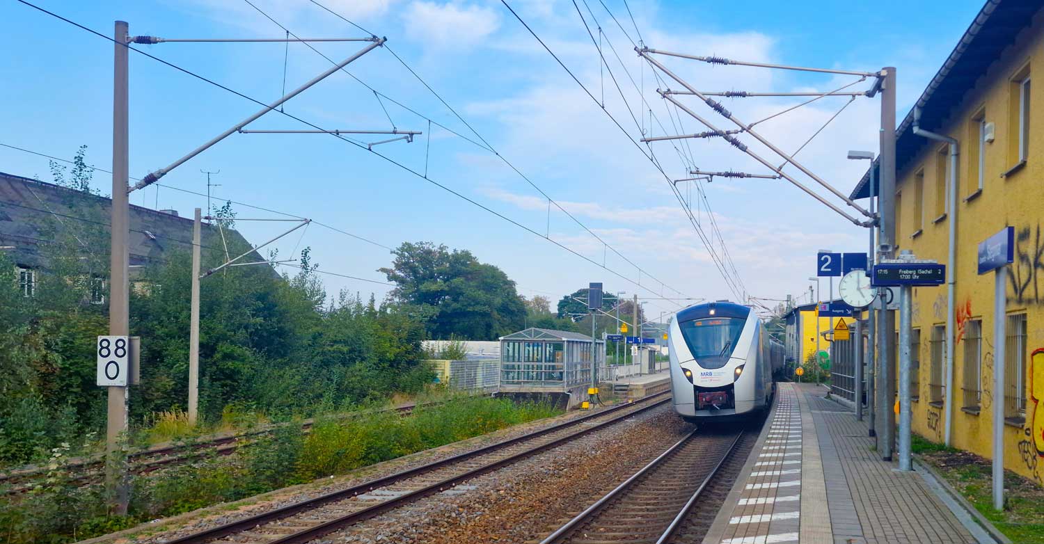 Freiberg (Sachs) 40,01 km 23,97 der Strecke Nossen 0,0 - Freiberg (Sachs) 23,97 - Staatsgrenze Deutschland/Tschechien - Moldava (Moldau) 63,40 (NM)