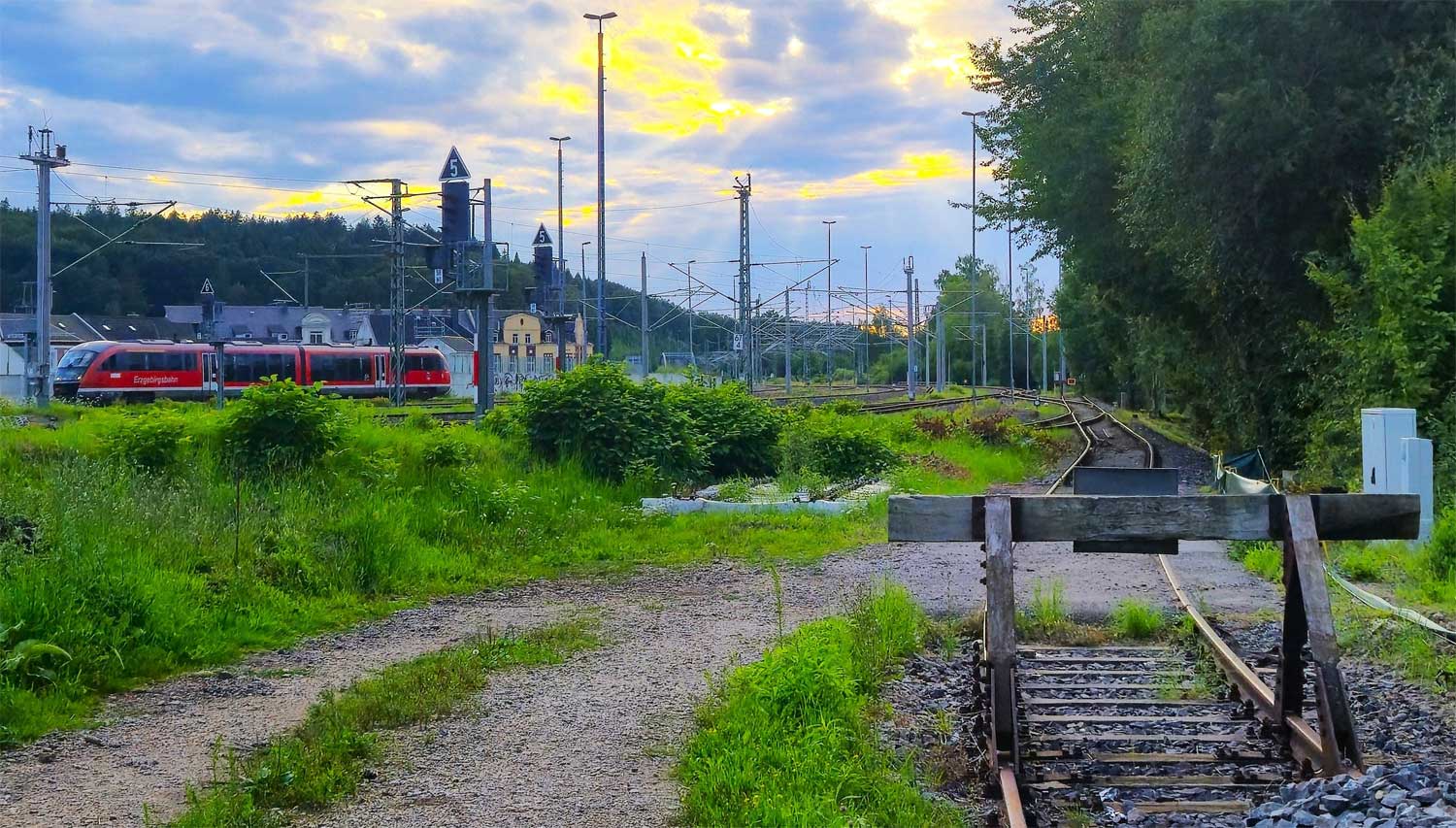 13,82 Streckenende des Güterzuggleises nach Tharandt [Strecke 6259: km 5,555 (Freital Ost, Weiche 3) - km 13,820 (Tharandt, Weiche 67)