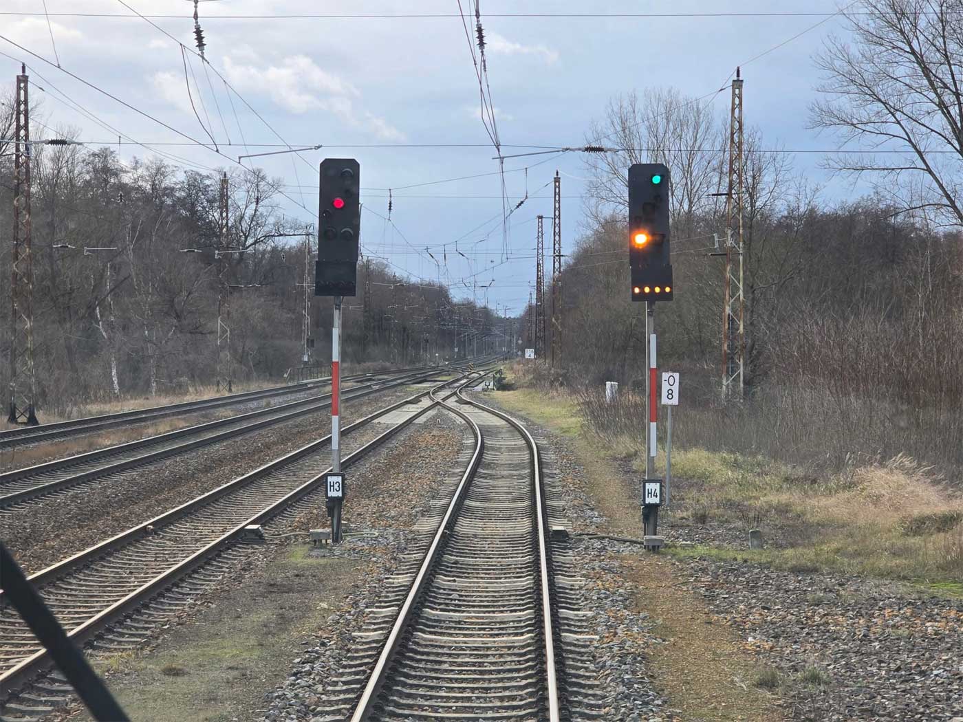 km 1,4; km 1,5 und km 1,6 zwischen Halle (Saale) Hbf und Abzw Peißen -Blick Richtung Guben