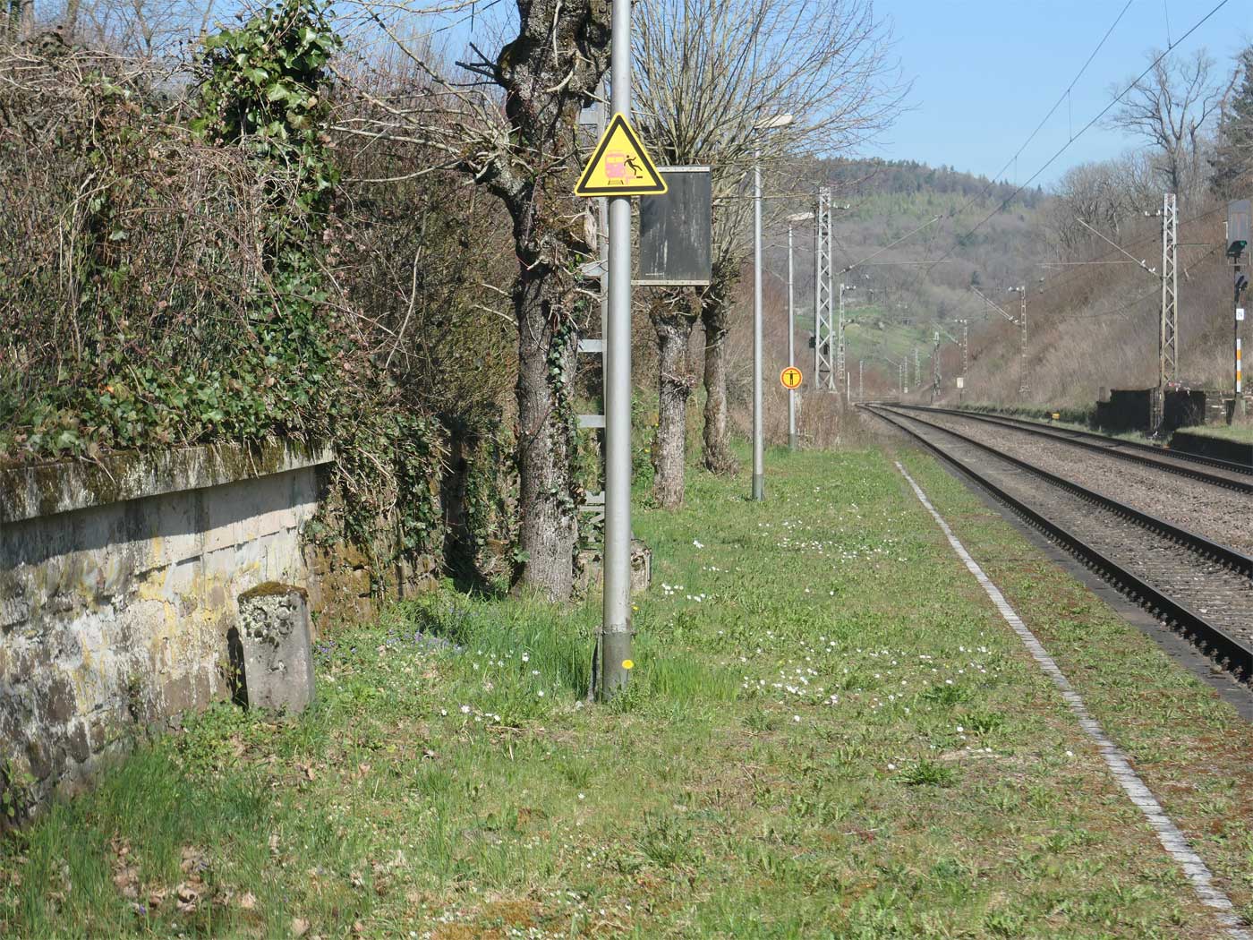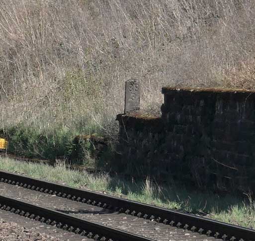km 76,4 (Tafel) und km 76,5 (Stein) in Wengerohr (heute: Wittlich Hbf) - Blick Richtung Perl