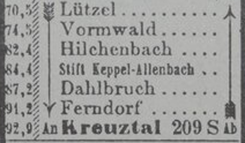 Tabelle 1917: Kreuztal - Hilchenbach 10,5 km