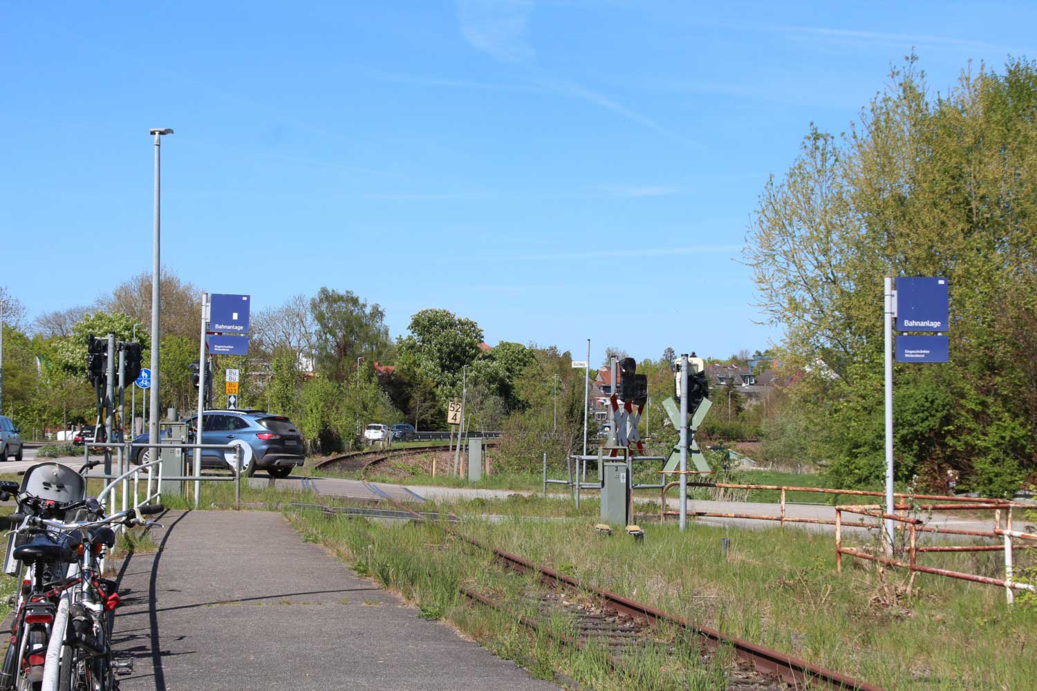 Im Hintergrund die Strecke Kiel Hbf 0,04 - Ascheberg (Holst) 26,78 - Eutin 47,74 - Streckenunterbrechung - Abzw Neustadt (Holst) Gbf 62,43 - Neustadt (Holst) 63,30