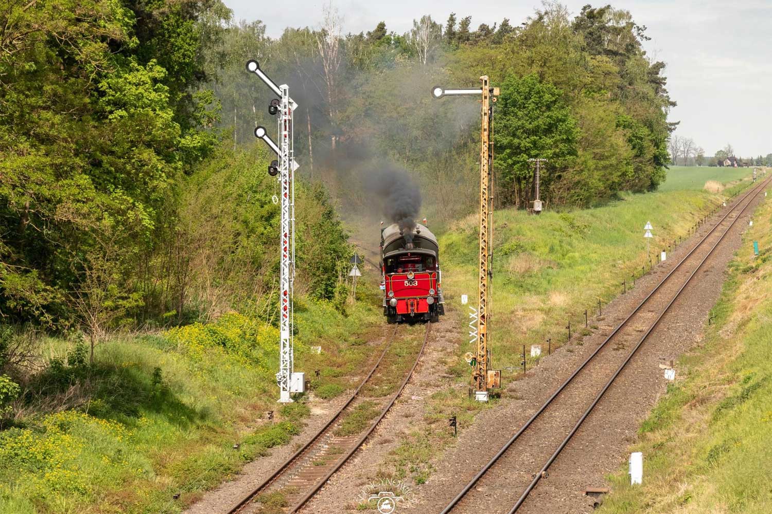 Links km 37,9 (hinter dem Signalmast) der Strecke