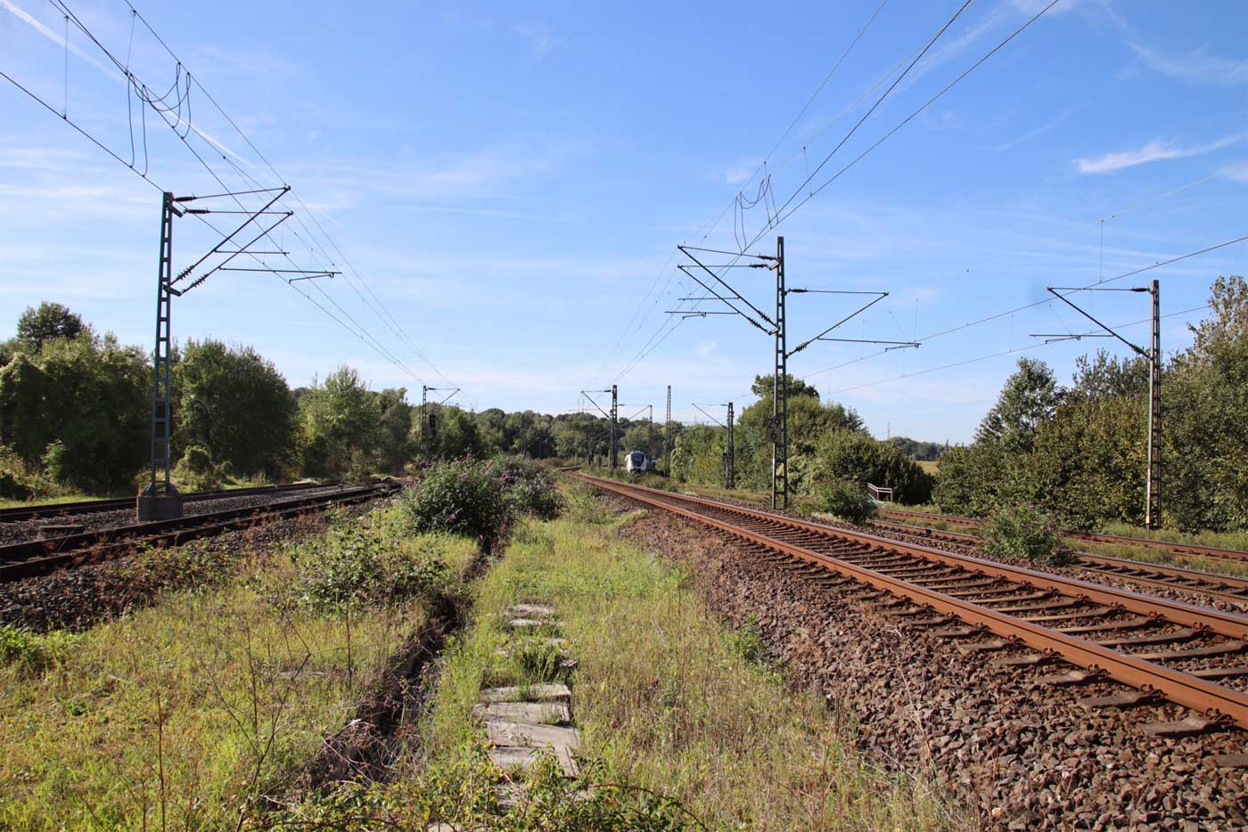 Mittig das Richtungsgleis der Strecke