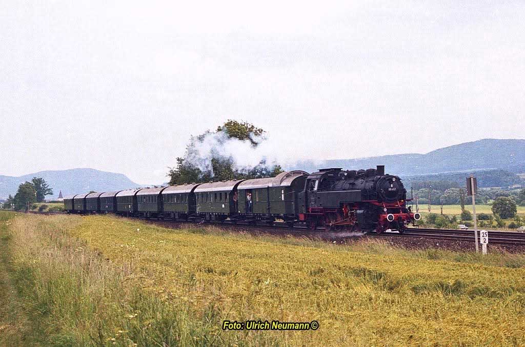 wurde wegen der erforderlichen Dampfheizung ab/bis Schirnding von tschechischen Dampfern befördert.