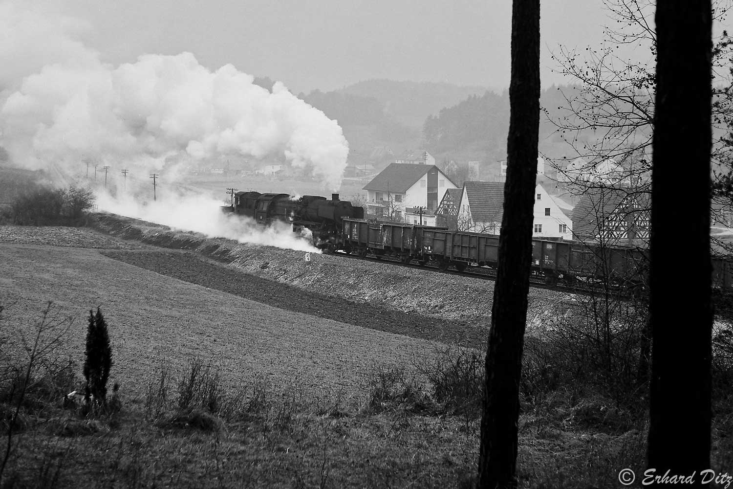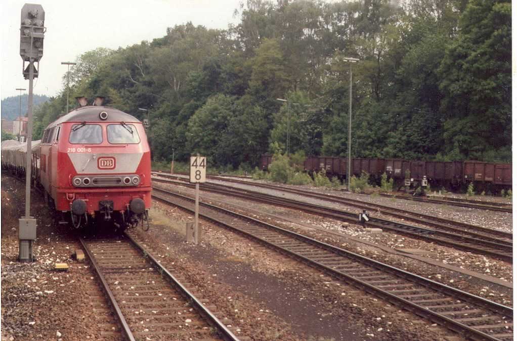 km 58,1 in Sulzbach-Rosenberg Hütte - Links am Bahnsteig 217 002, rechts mit Güterzug 217 022
