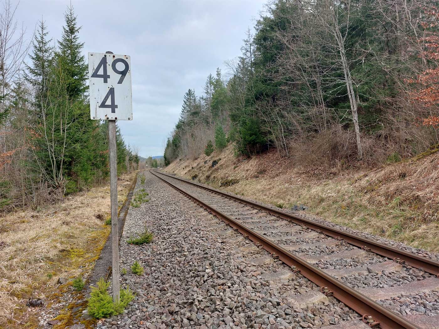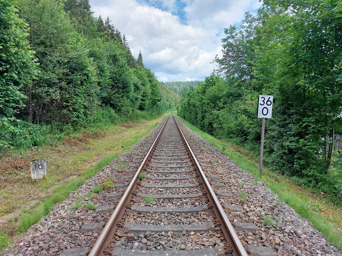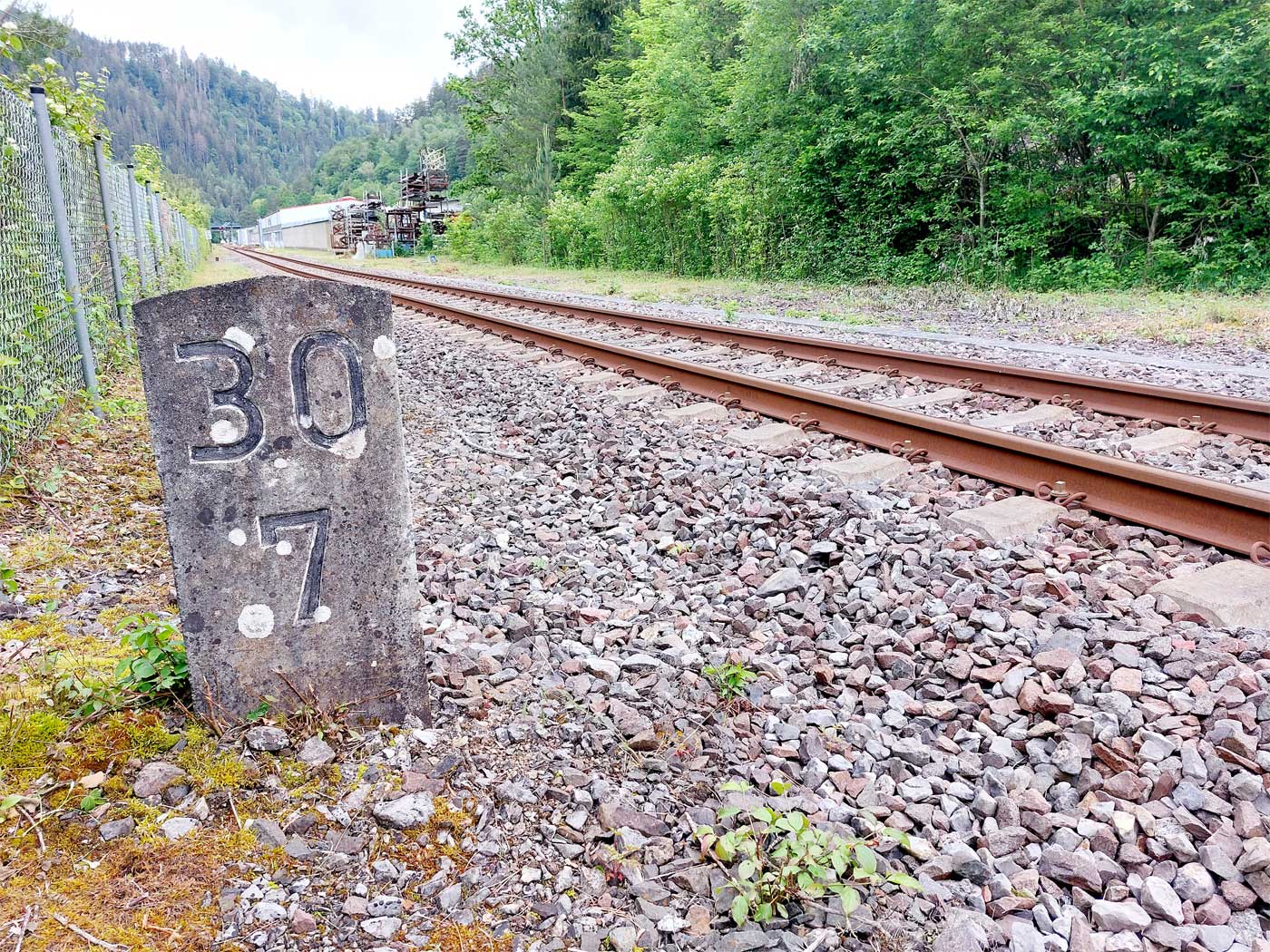 Rechts die Strecke Eutingen (Württ) 0,0 - Freudenstadt Hbf 29,91 - Schiltach 54,78