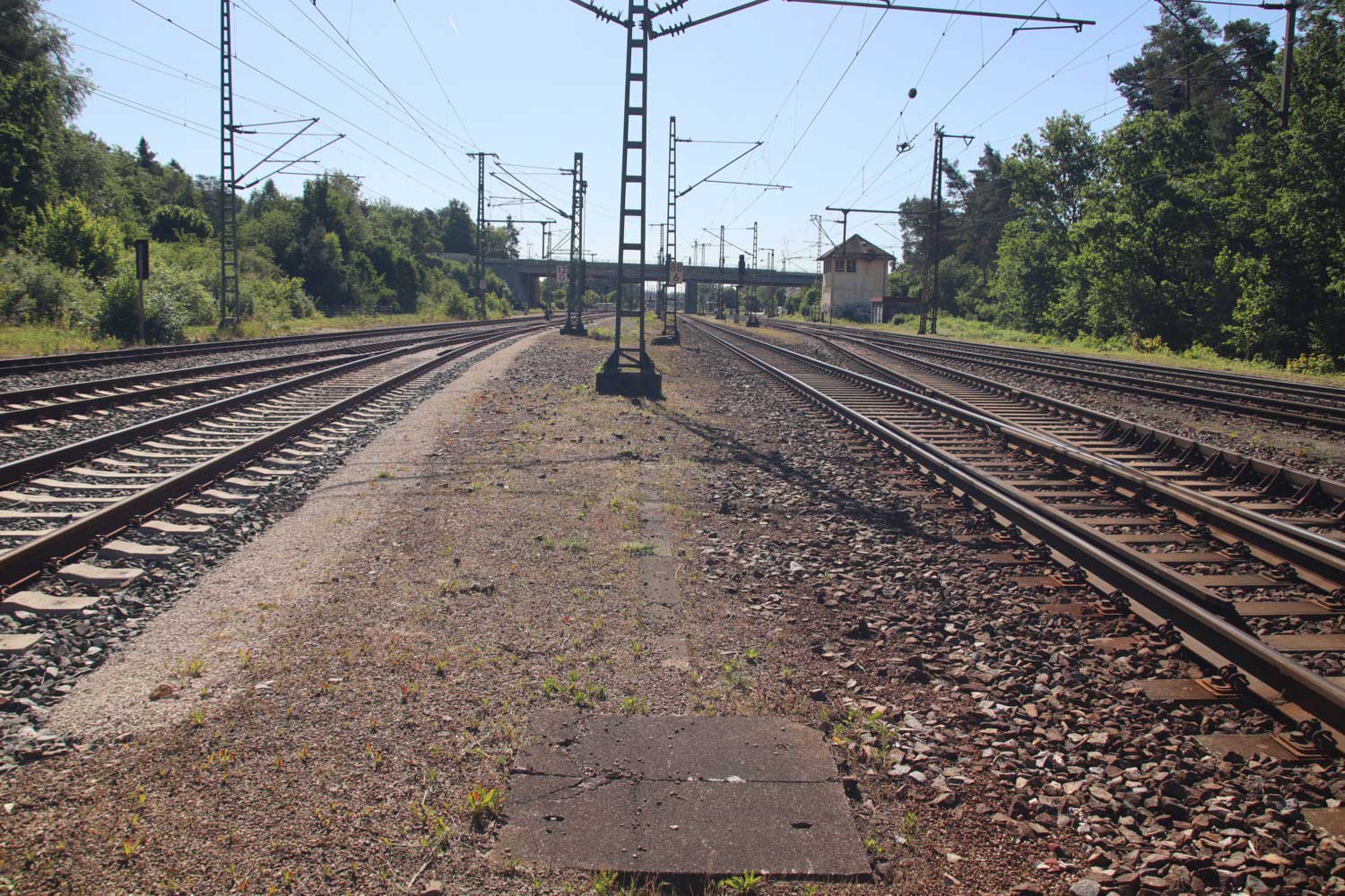 Links Gegenrichtungsgleis, rechts Richtungsgleis