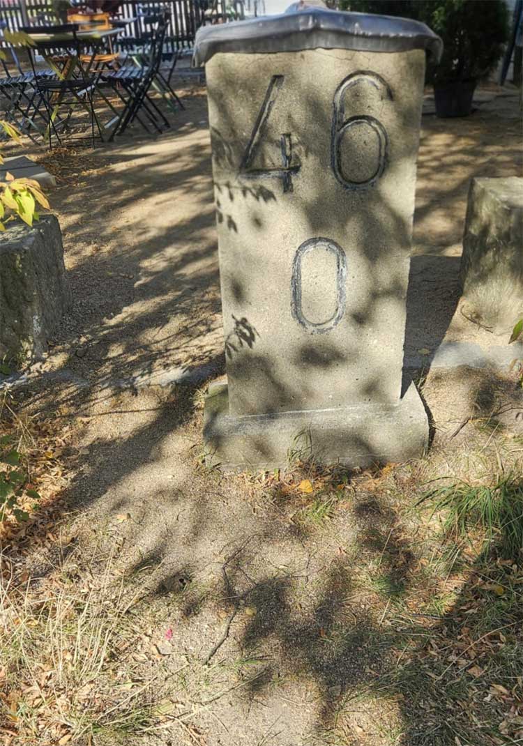 km 24,7 (Stein) und km 24,8 (Tafel und Stein) auf dem Neißeviadukt - Blick Richtung Liberec (Reichenberg)