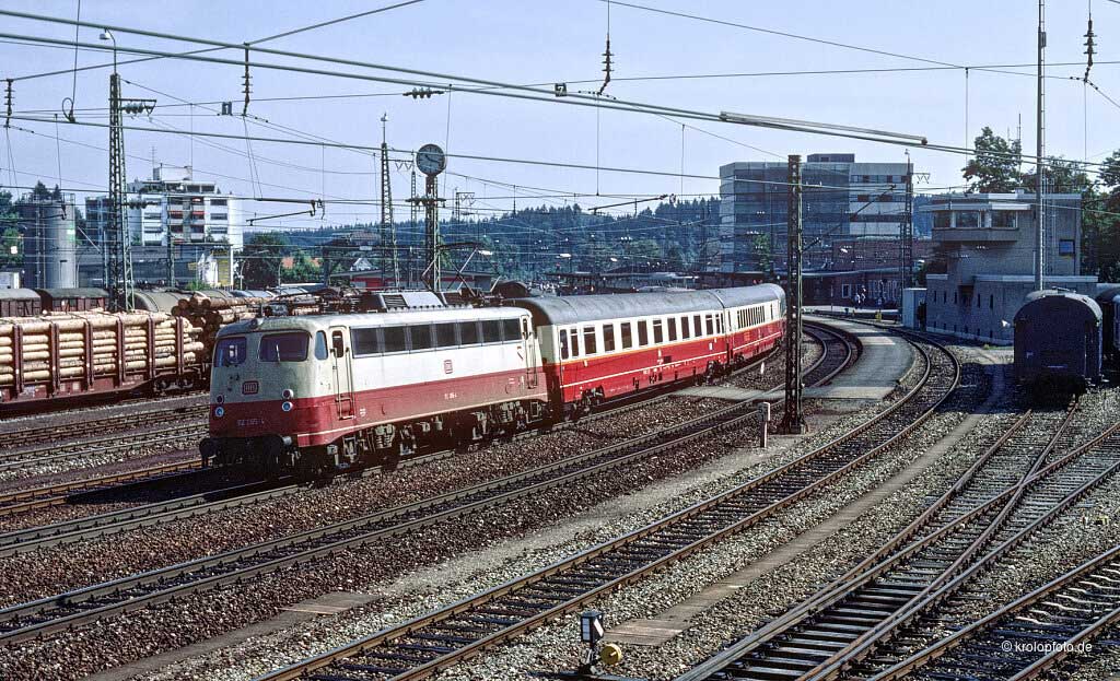 km 80,9 in Freilassing - 194 041 vom Bw Freilassing fährt an ihrem Zuhause vorbei (um 1980)