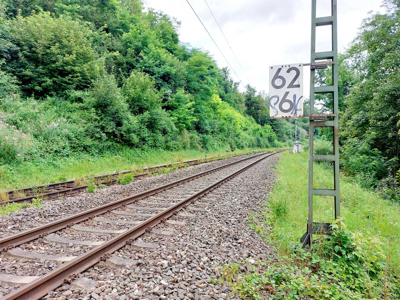 Rechts km 2,4 (Gegenrichtungs- und Richtungsgleis) der Strecke
