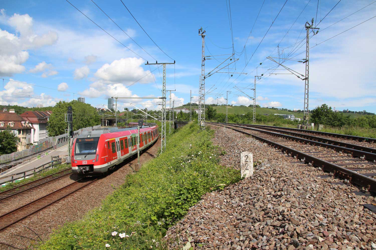 Unten km 2,2 der Strecke Stuttgart Hbf - Bietigheim-Bissingen (4801)