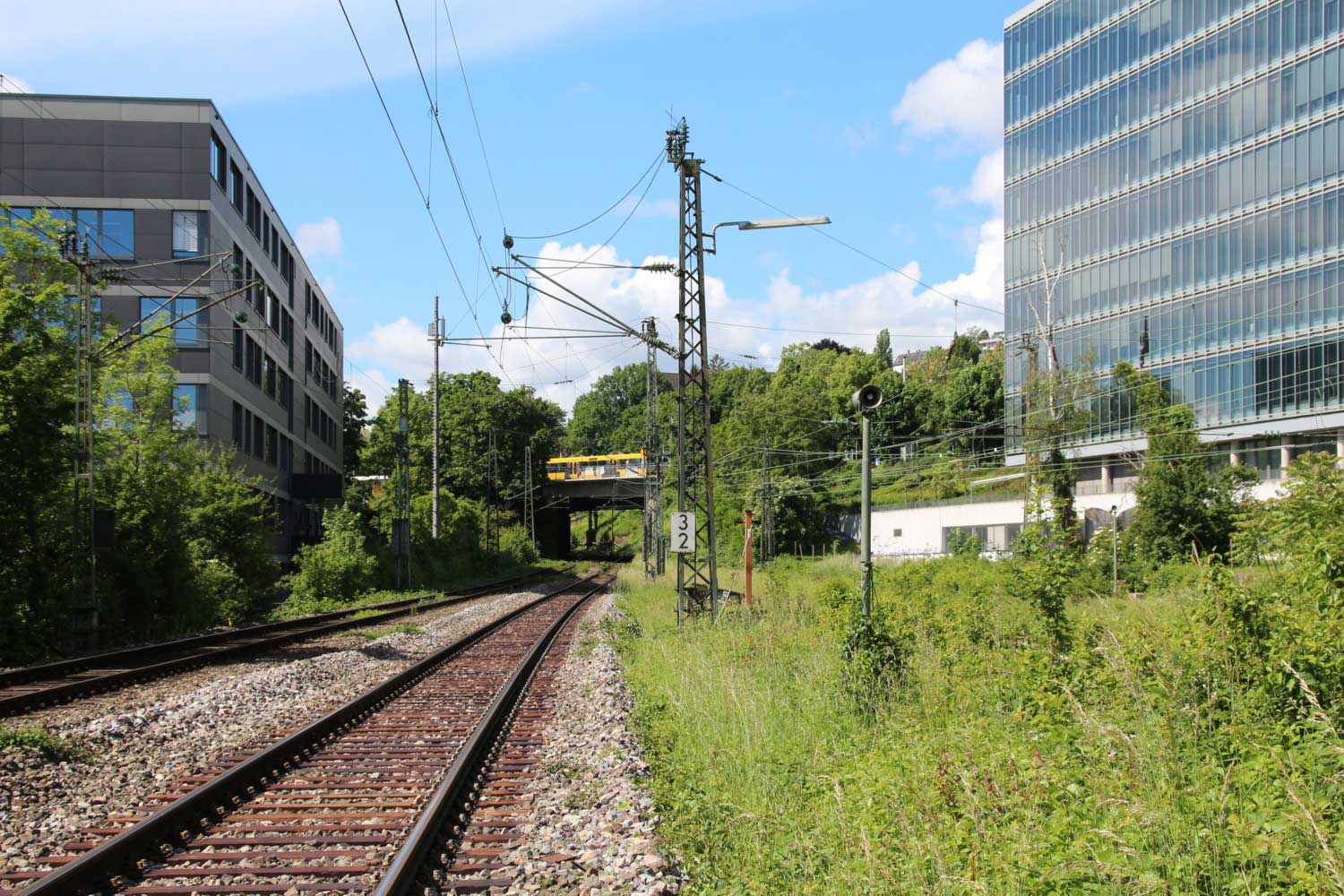km 2,2 (links) zwischen Stuttgart Hbf und Stuttgart West - Blick Richtung Horb