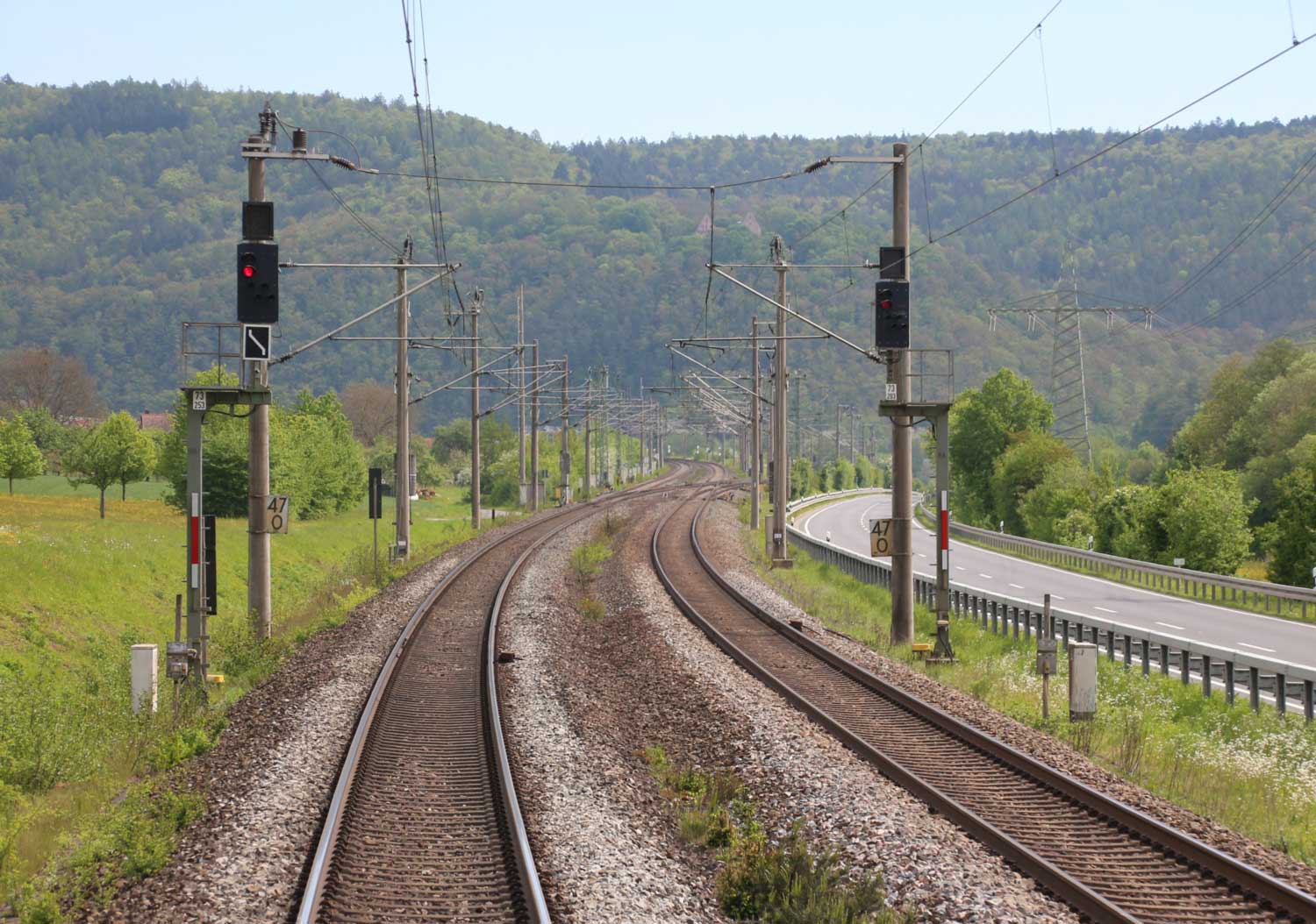 km 43,8 zwischen Langenprozelten und Lohr Bf - Blick Richtung Aschaffenburg