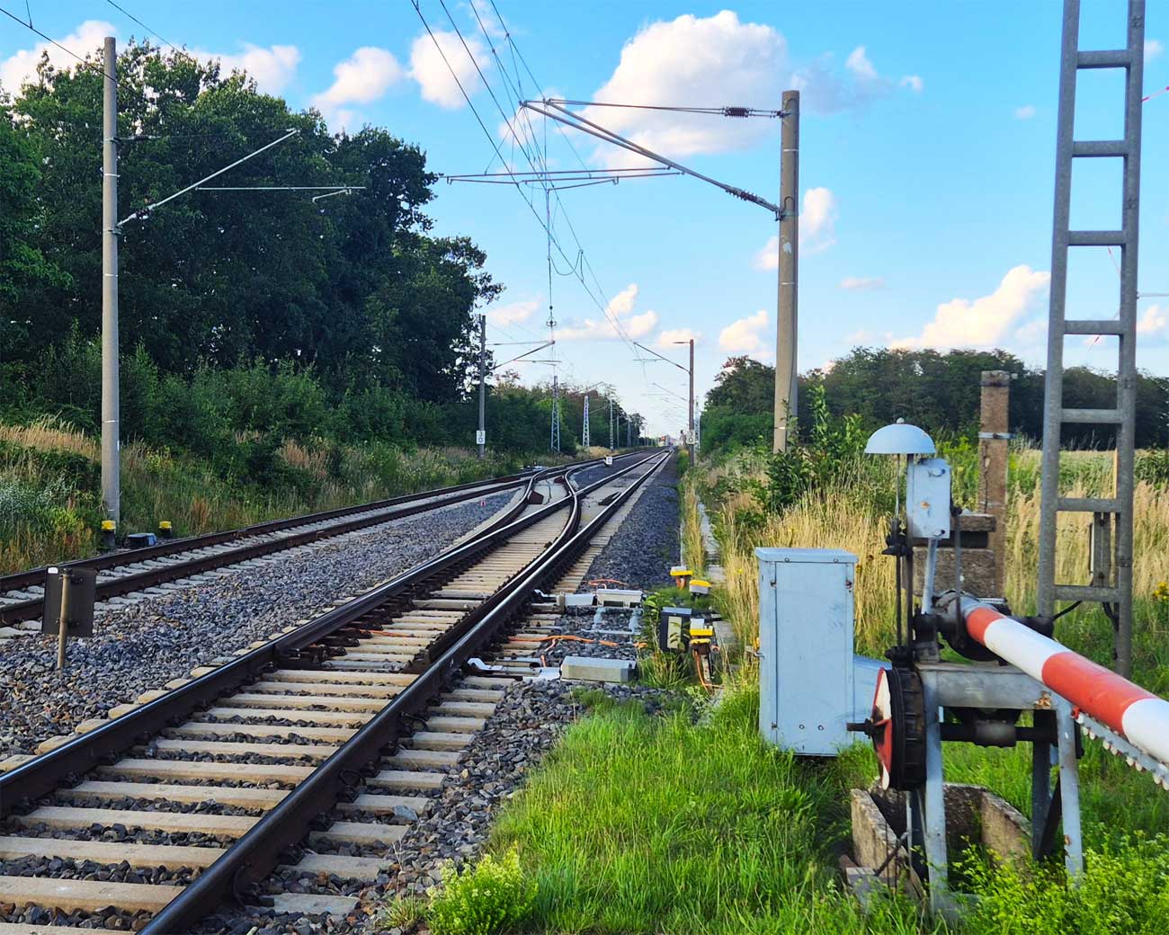km 6,6 in Wülknitz - Blick Richtung Abzw Zeithain Bogendreieck