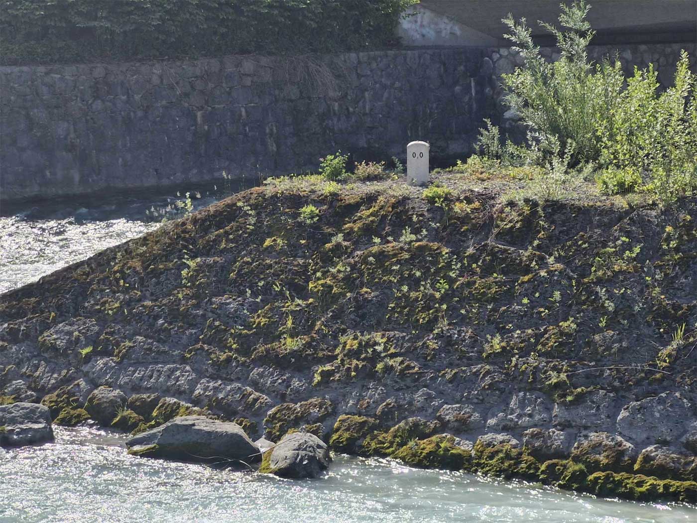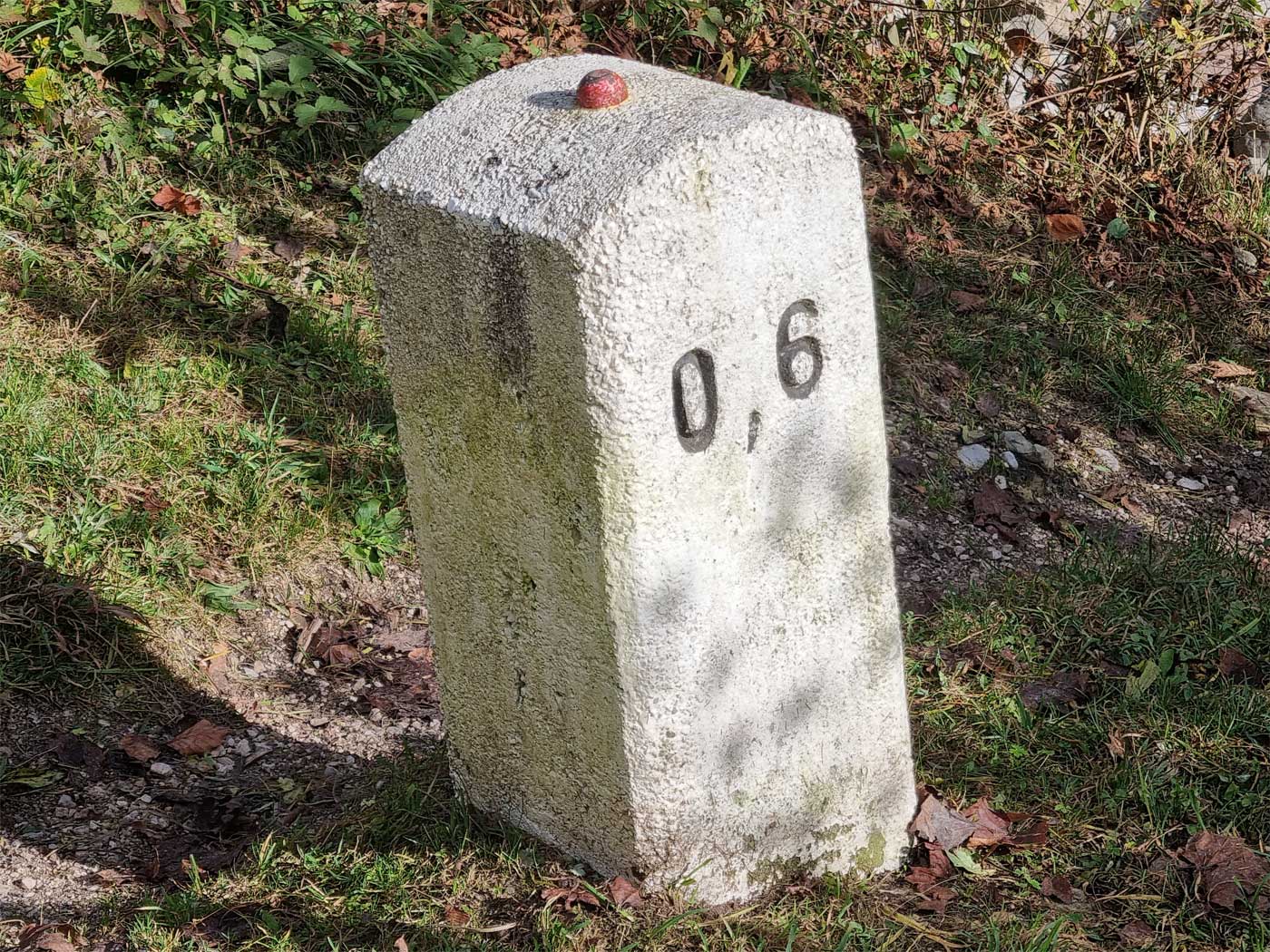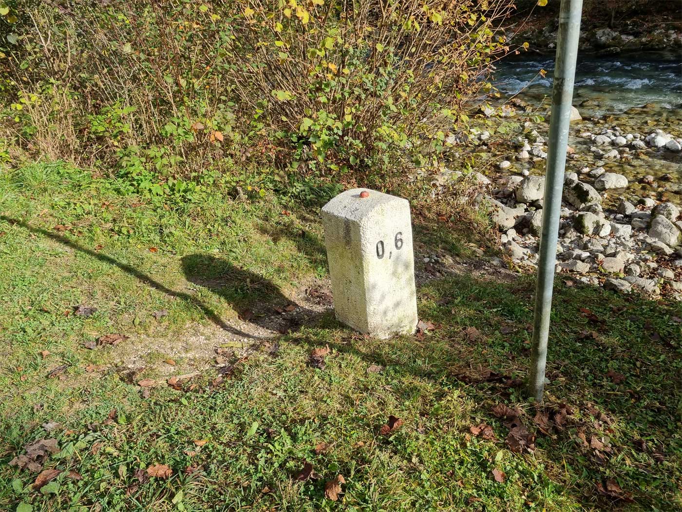 km 5,6 (Tafel) und km 5,7 (Stein) zwischen Bayerisch Gmain und Hallthurm - Blick Richtung Bad Reichenhall