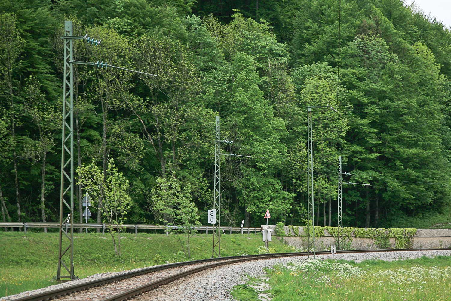 Deutsch: Steilstrecke der Bahnstrecke Freilassing–Berchtesgaden kurz vor Hallthurm
