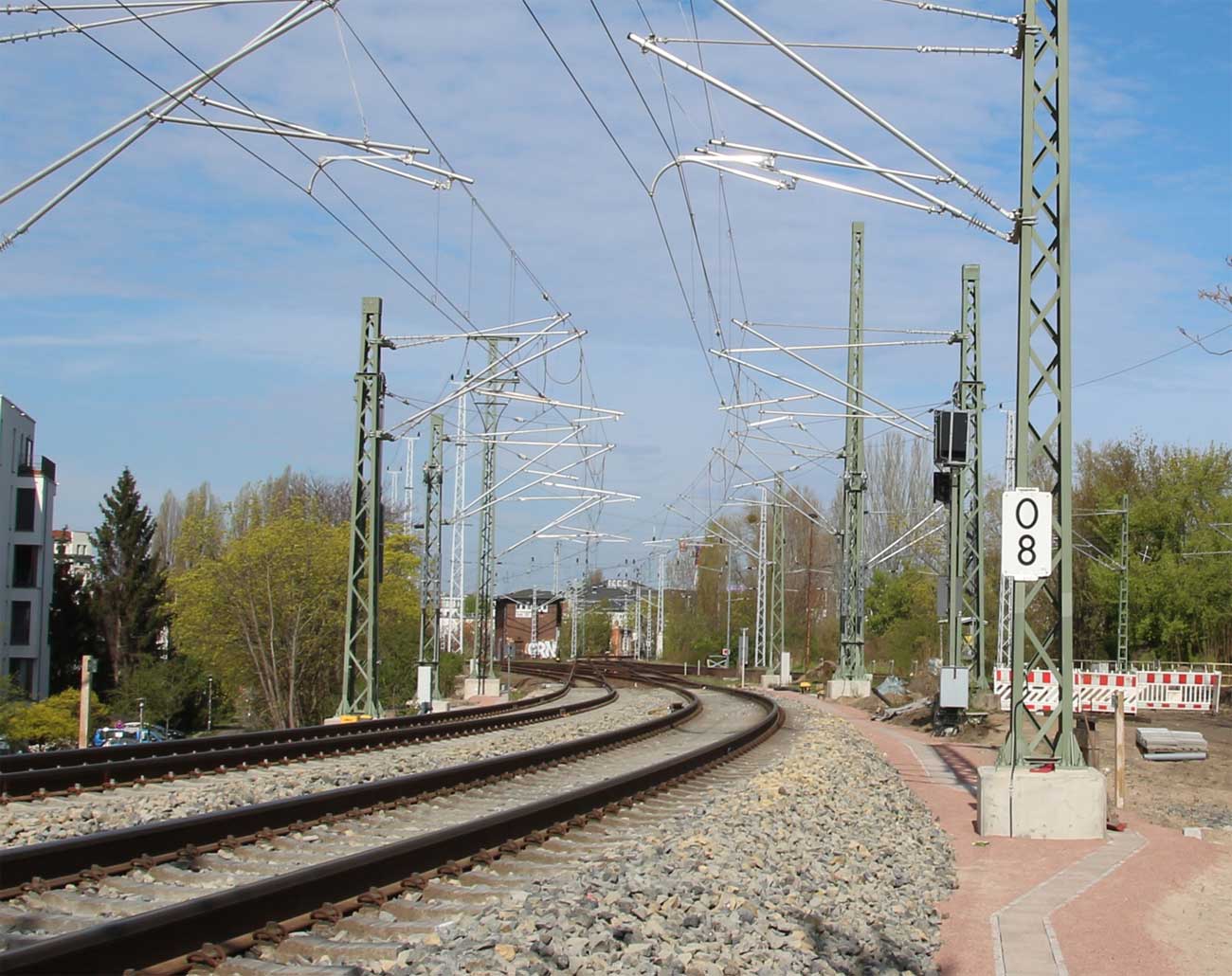 km 0,8 (Tafel) und km 0,9 (Stein) - Blick Richtung Abzw Berlin Frankfurter Allee (Fst)