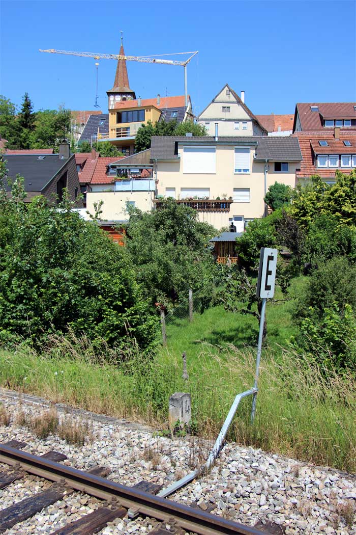 km 9,0 (links am Oberleitungsmast vesteckt) in Holzgerlingen Bf