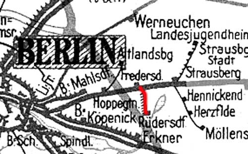 | Fredersdorf (b Berlin) | 0,05 | km 22,82 der Strecke Berlin Schlesischer Bf - Küstrin Neustadt - Kreuz - Schneidemühl Pbf - Dirschau - Elbing - Königsberg (pr) Hbf - Insterburg - Eydtkuhnen - Reichsgrenze |