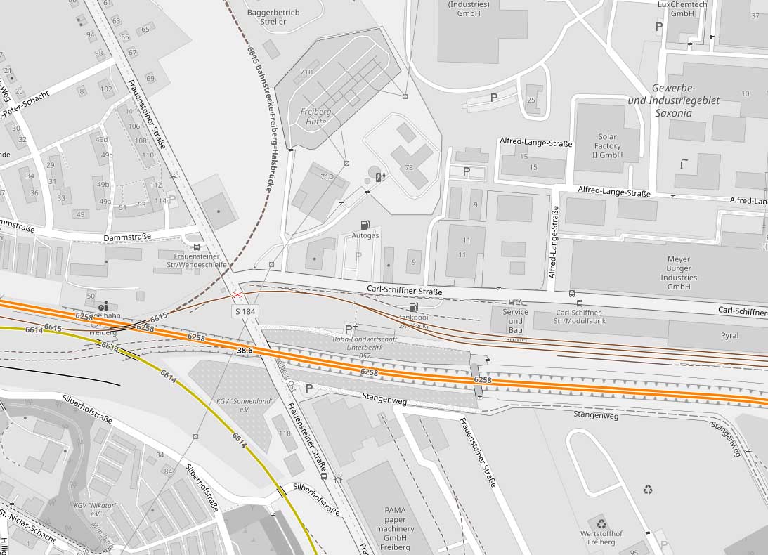 Freiberg (Sachs), Gl 5, km 0,061 - Halsbrücke, W 14, km 7,694 G-Bahn (6615)