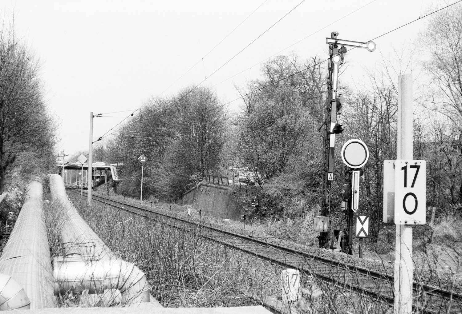 Im Hintergrund km 9,8 der S-Bahnstrecke