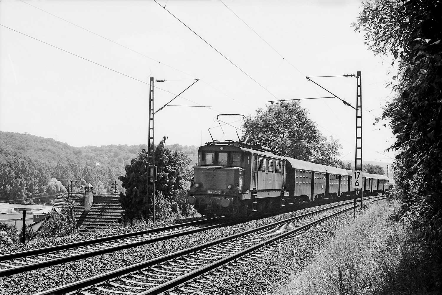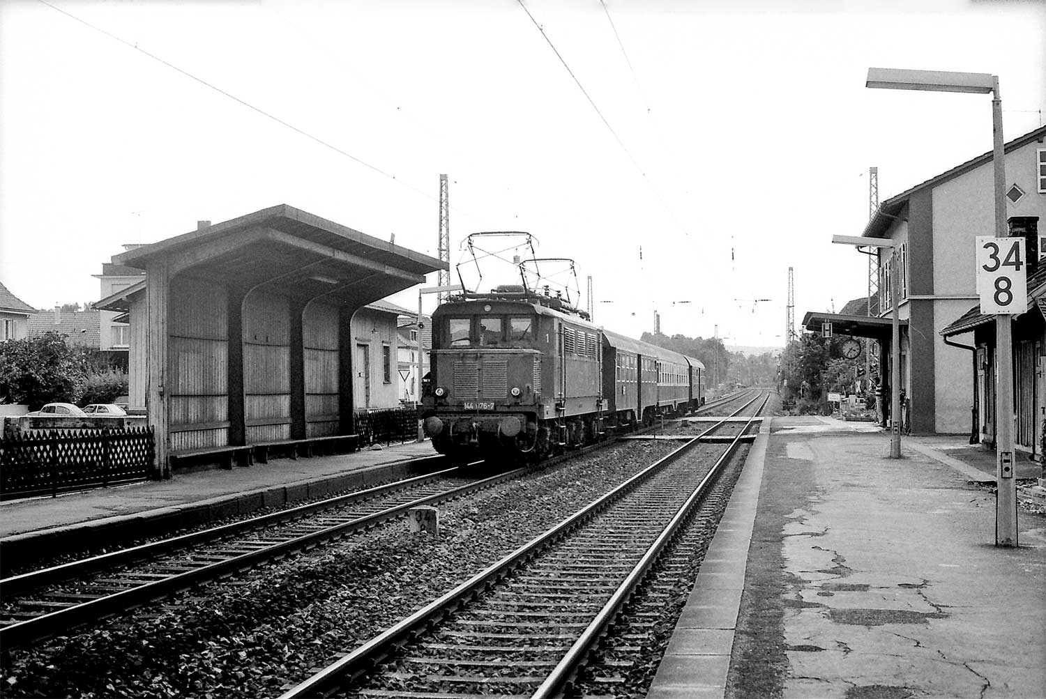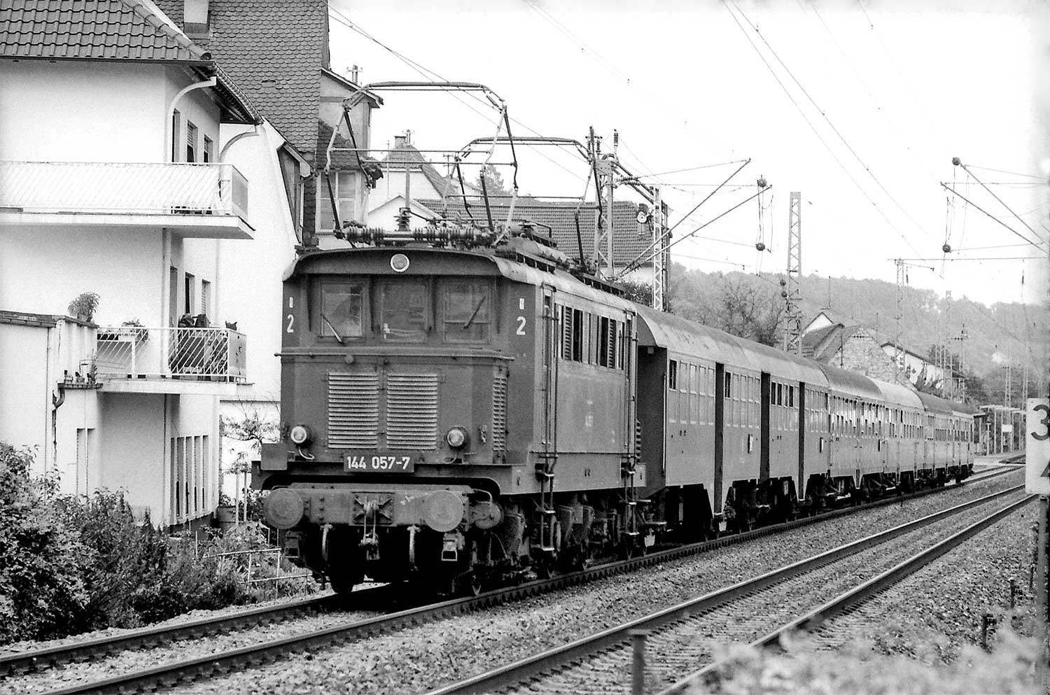 Letzter Einsatz der Stuttgarter E 44 - geschmückte 144 034 auf dem Weg nach Pforzheim