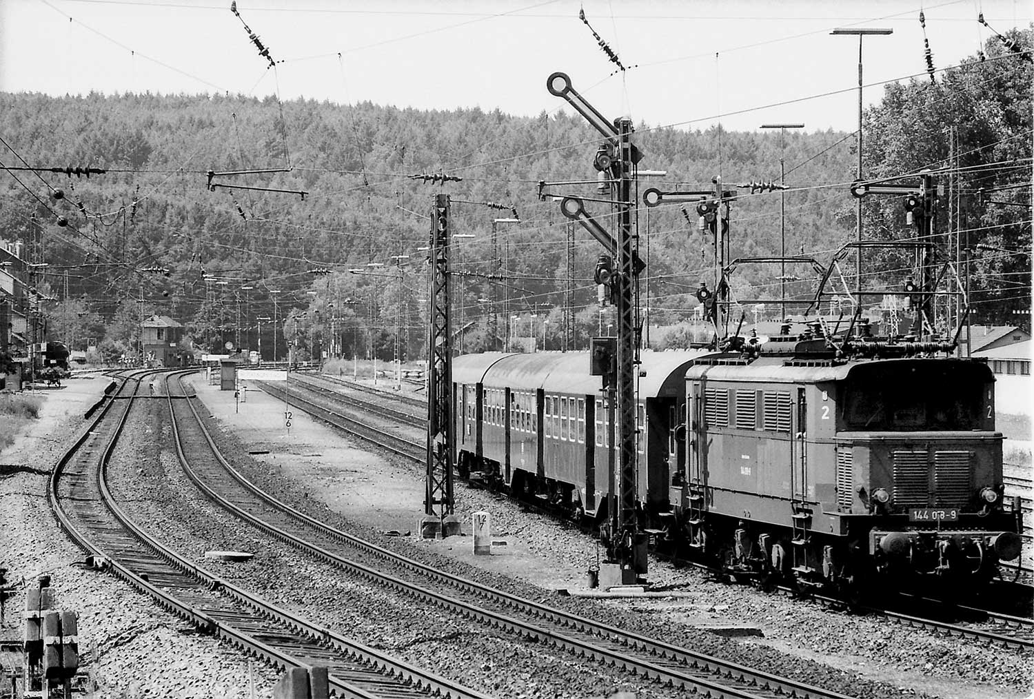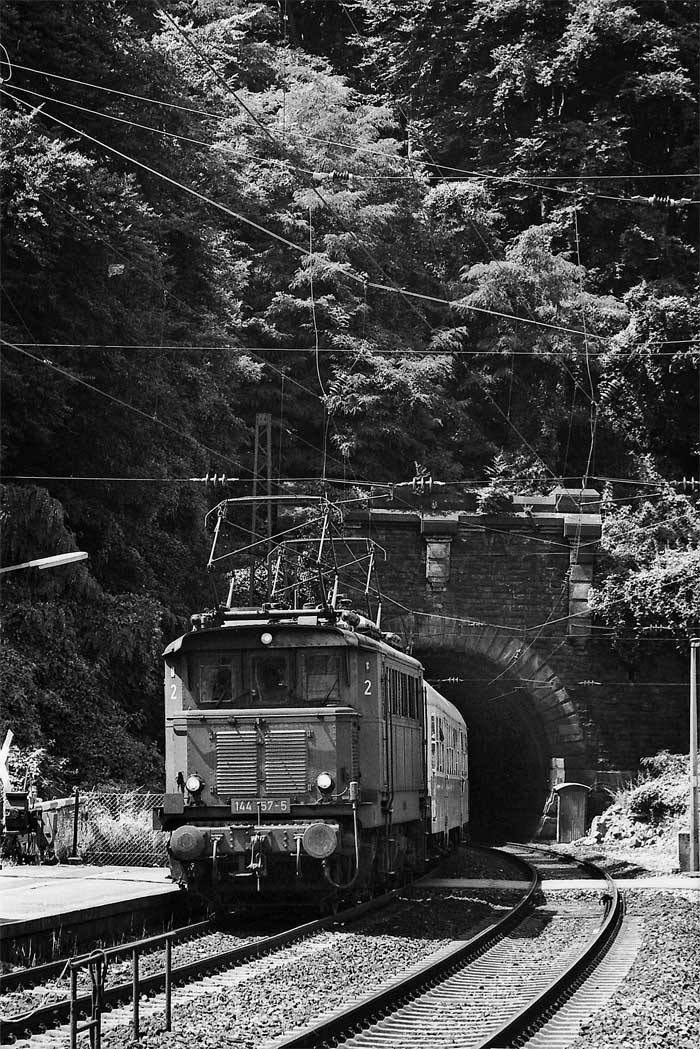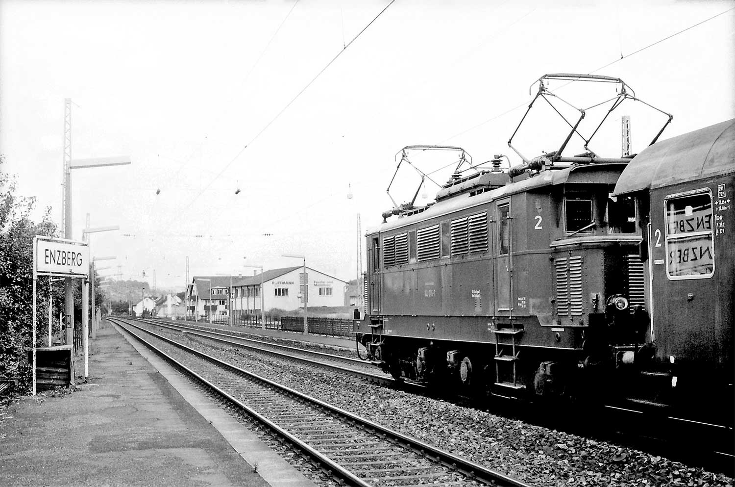Letzter Einsatz der Stuttgarter E 44 - geschmückte 144 034 auf dem Weg nach Pforzheim