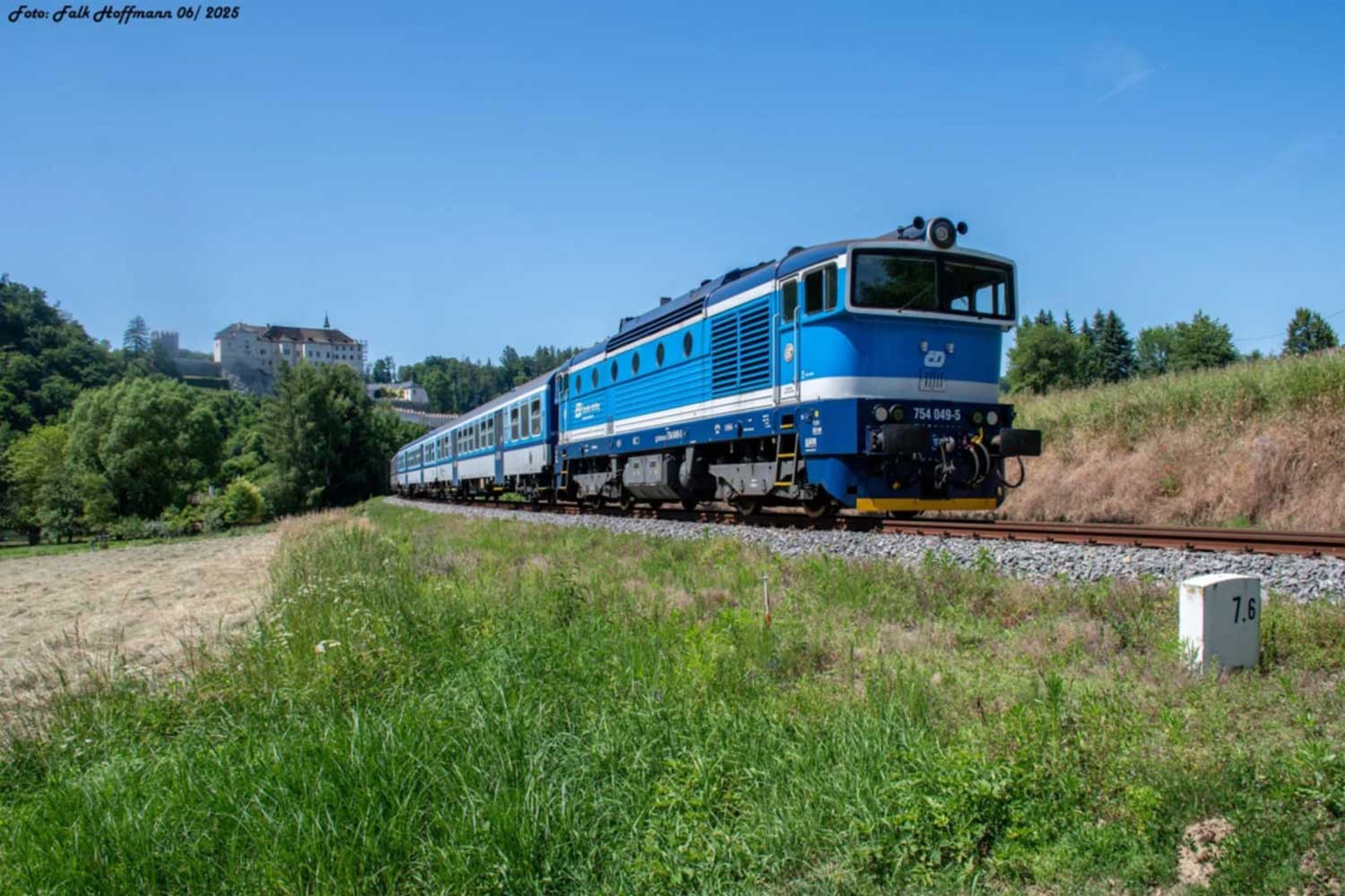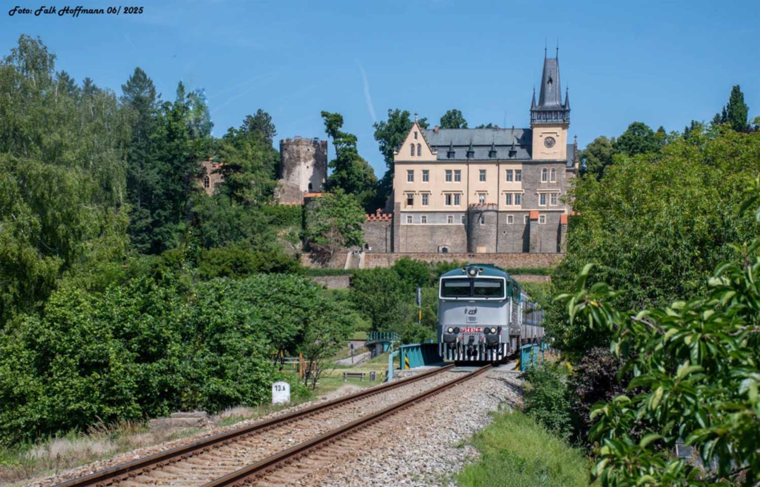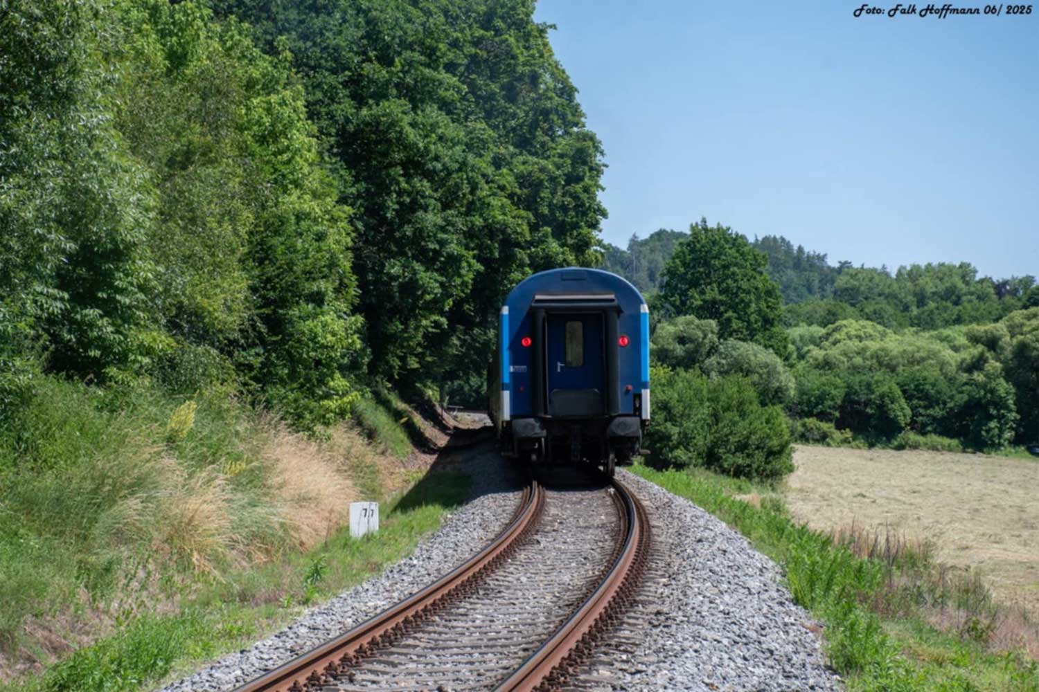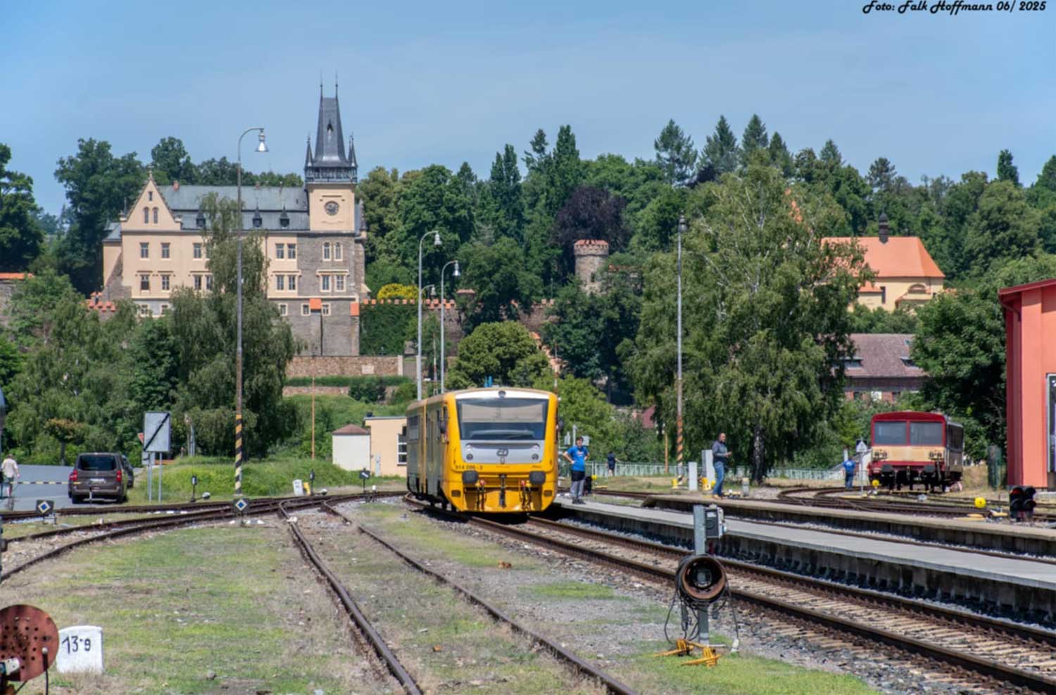 km 7,7 zwischen Český Šternberk zastávka (Böhmisch Sternberg Haltestelle / Český Šternberk zastávka) und  Soběšín (Sobieschin / Soběšín)