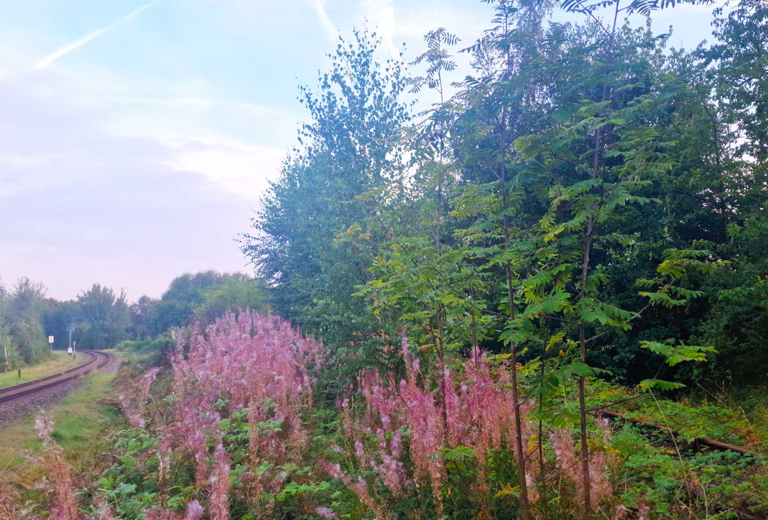 bei km 22,8 (links) in Eibau - Blick Richtung Streckenende