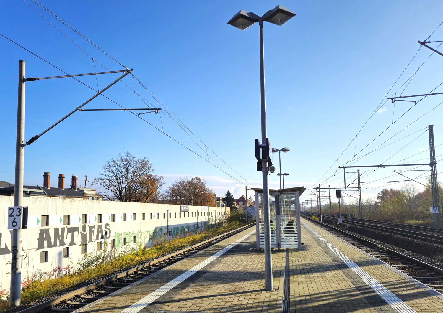| km 45,44 der Strecke Děčín hl. n. (Bodenbach) 0,548 - Grenze Tschechien/Deutschland 11,860 - Schöna 13,89 - Pirna 45,44 - Dresden Hbf 62,49 - Dresden Neustadt 66,33 (6240) | ||