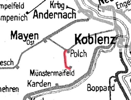 Rechts km 26,1 der Strecke Abzw Koblenz-Lützel Nord 0,0 - Mayen Ost 34,14