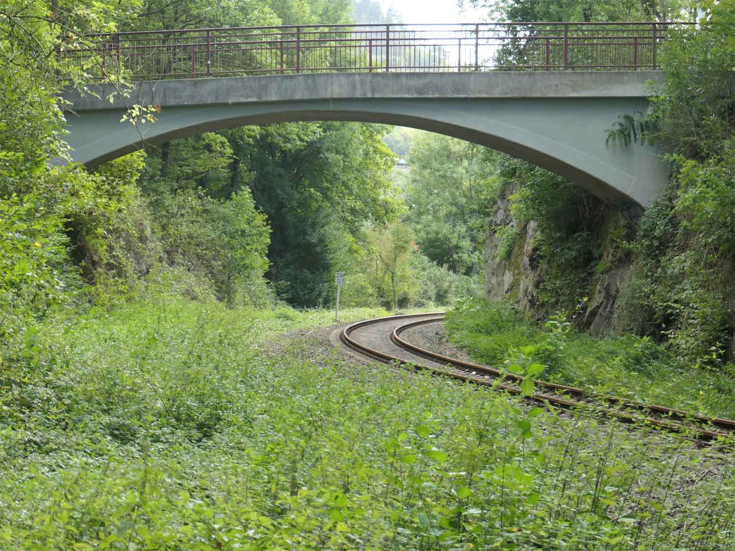 Mit Auflassung der Abzweigstellen Reisberg und Hellenbergwurde der Bogen von Remagen her etwas aufgeweitet. Dadurch entstand die Überlänge. | |