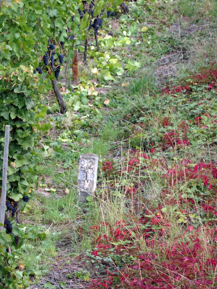 km 27,0 (Tafel und Stein) in Kreuzberg - Blick Richtung Remagen