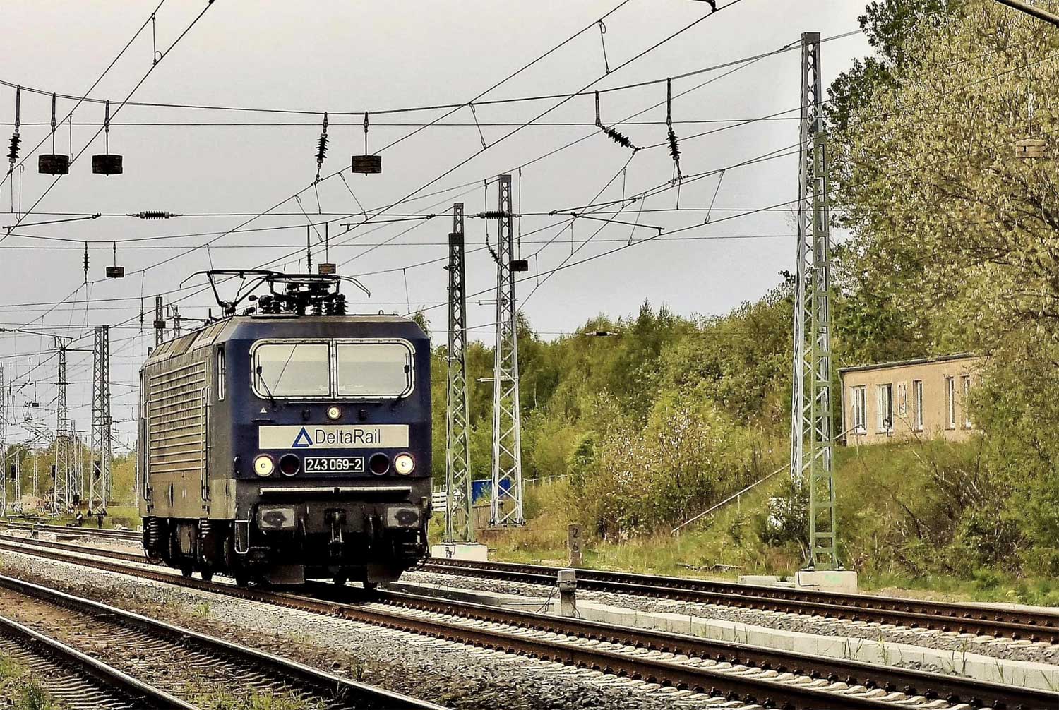 243 069 auf der Strecke Kavelsdorf 0,0 - Rostock Seehafen Süd - Weiche 2012, km 13,91 11,98 (6448)