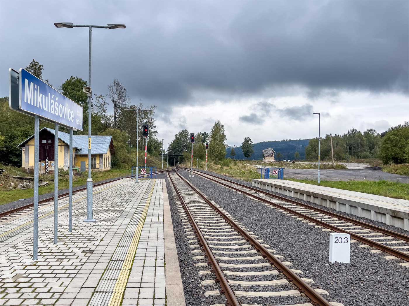 20,224 | km 0,108 der Strecke Mikulášovice dolní n. (Niedernixdorf) 0,108 - Rumburk (Rumburg) 18,204 |