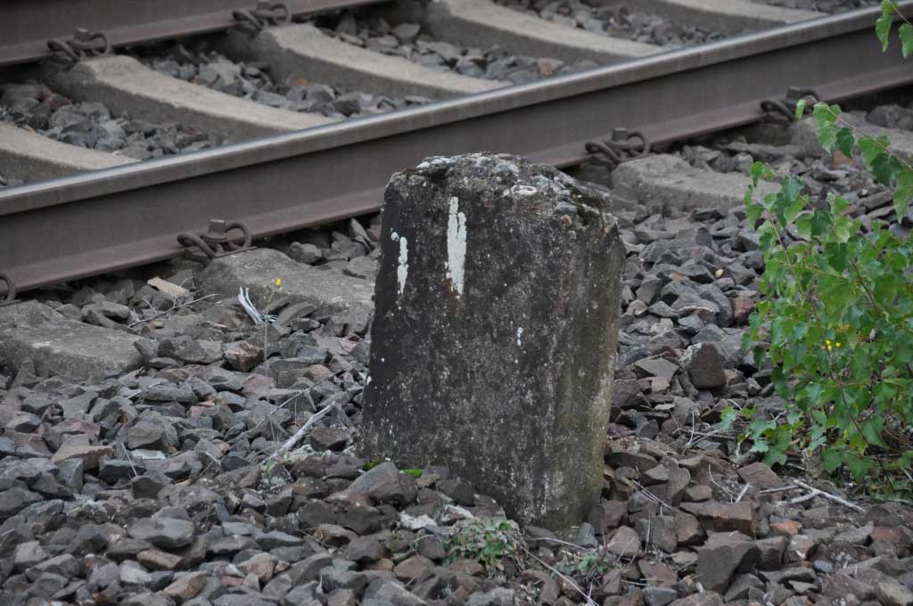 | km 0,0 der Strecke Saarbrücken Hbf 0,0 - Brebach 4,491 - Hanweiler16,001 - Direktionsgrenze Saarbrücken/Lothringen 16,934 = km 1,043 - Saargemünd 0,0 (auch Angabe km 17,972 von Saarbrücken Hbf) | ||