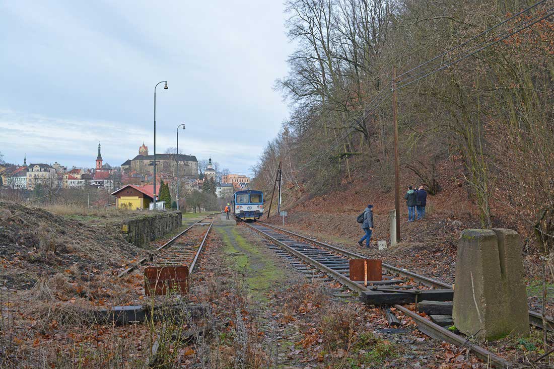 18,56 | km 200,261 der Strecke odb. Praha-Bubny (Abzw Prag-Bubna) 0,0 - Kladno 28,04 - Lužná u Rakovníka (Luschna-Lischan) 61,267 - Grenze Tschechoslowakei/Sudetenland 72,698 - Satkau (Sádek u Žatce) 81,745 - Komotau (Chomutov) 125,173 - Eger (Cheb) 237,252 |