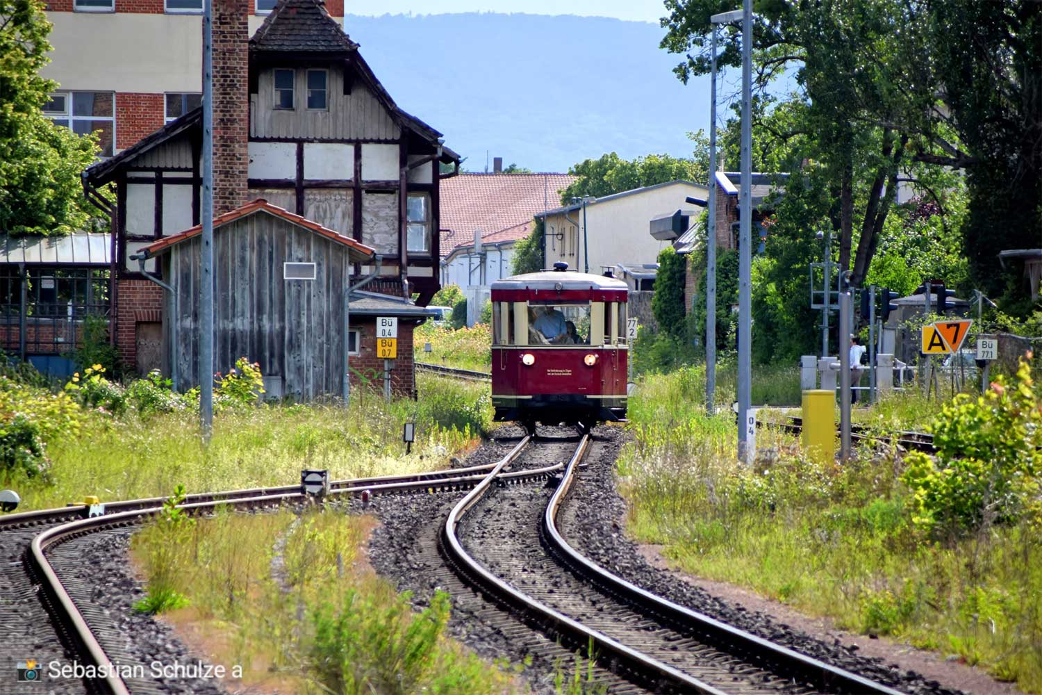 99 5901 auf der Fahrt nach Stiege; 99 7245 befindet sich auf der Hatzquerbahn