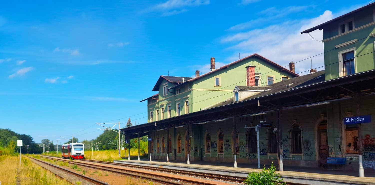 | St. Egidien | 19,78 | km 104,91 der Strecke Dresden Hbf -0,05 - Chemnitz Hbf 79,73 - Zwickau (Sachs) 128,19 - Abzw Werdau Bogendreieck (Neumarker Spitze) 136,23 (DW) |