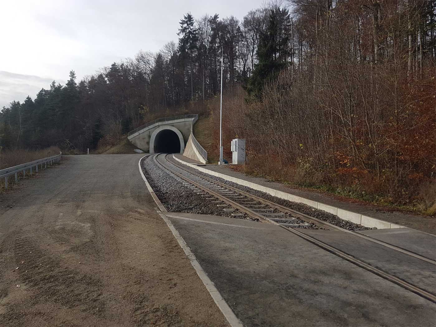 Im Hintergrund das Nordportal des Hirsauer Tunnels