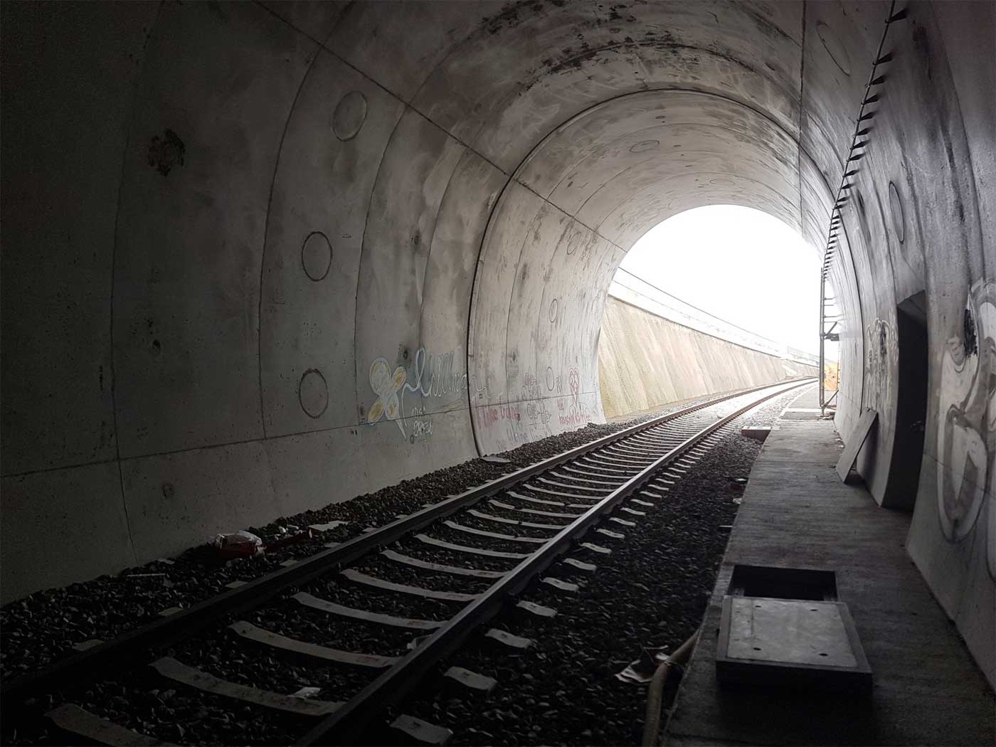 An den Portalen werden zum ungestörten Einflug der Tierchen aktuell Tunnelvorbauten errichtet, deren ästhetische Qualitäten leider sehr zweifelhaft sind: