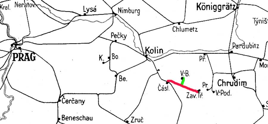 Tschaslau Lokalbahnhof / Čáslav místní nádraží 0,0 - Schleb / Žleby 7,686 - Sawratetz-Tremoschnitz / Závratec-Třemošnice 16,990