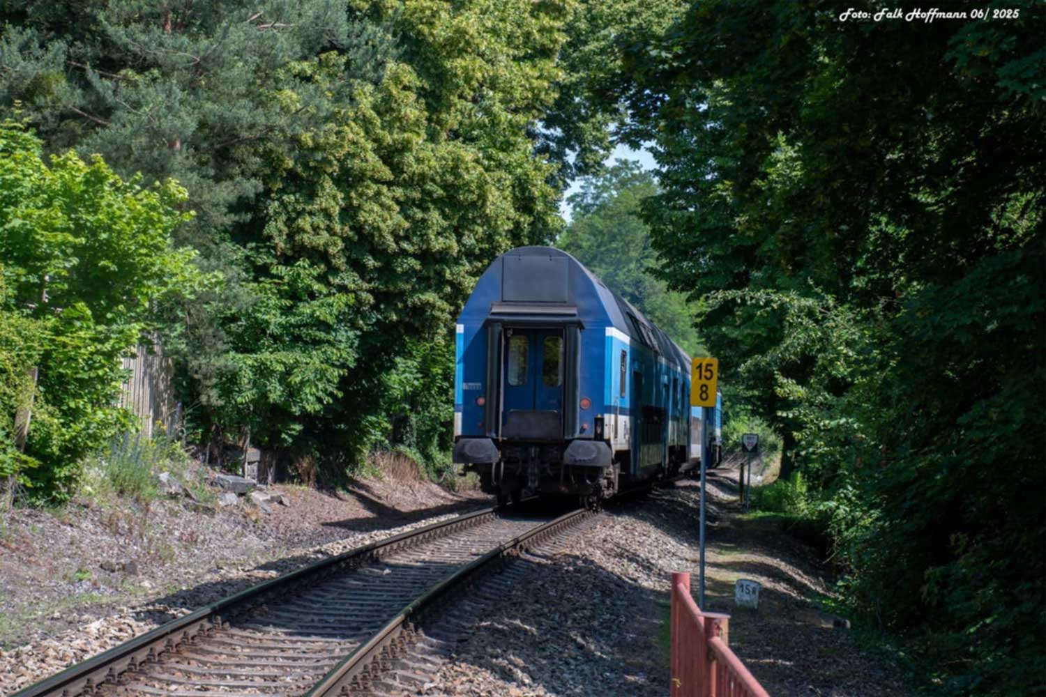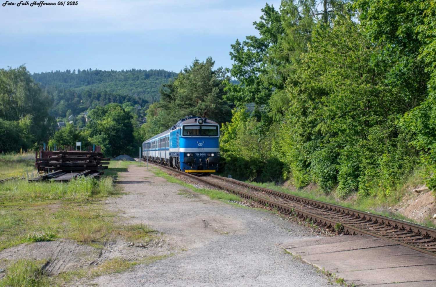 km 25,9 zwischen Luka pod Medníkem (Luk / Luka pod Medníkem) und Petrov u Prahy (Pikowitz / Píkovice)